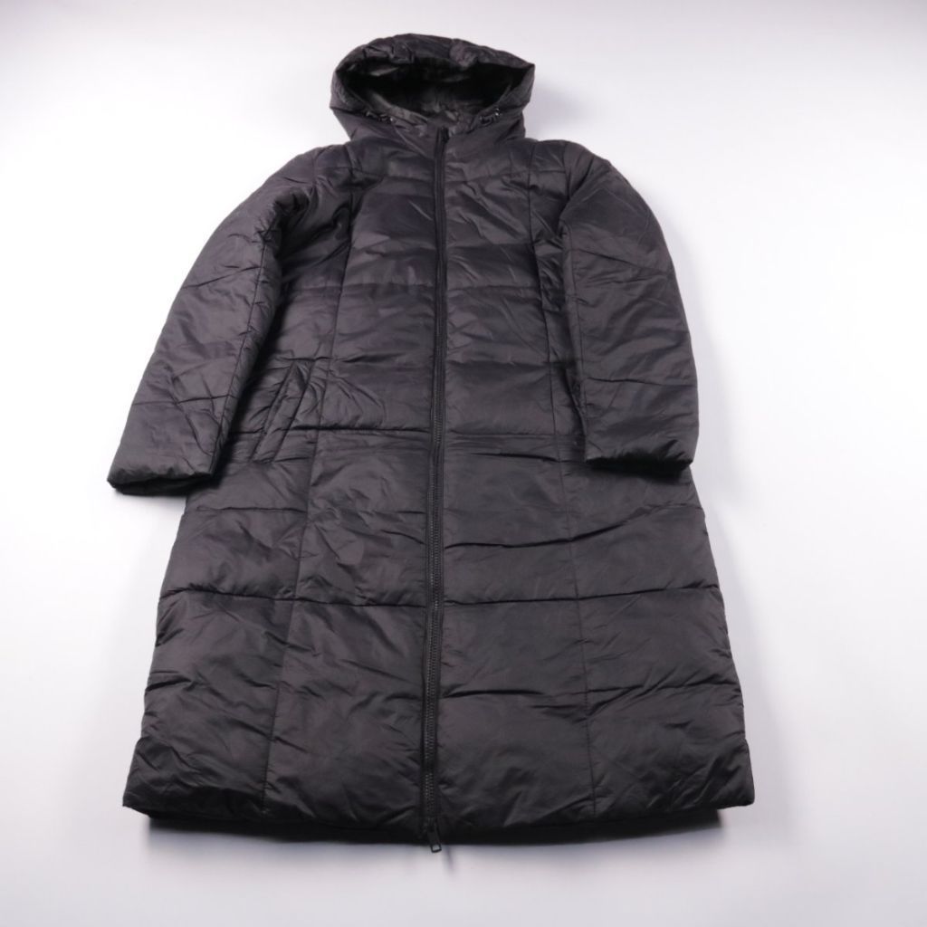 Удлинённый стёганый пуховик ONLY чёрного цвета с капюшоном и застёжкой на молнию по всей длине. Подойдёт для зимних прогулок и повседневной носки в холодную погоду. Практичный плюс — капюшон и закрытая молния помогают лучше защищать от ветра.