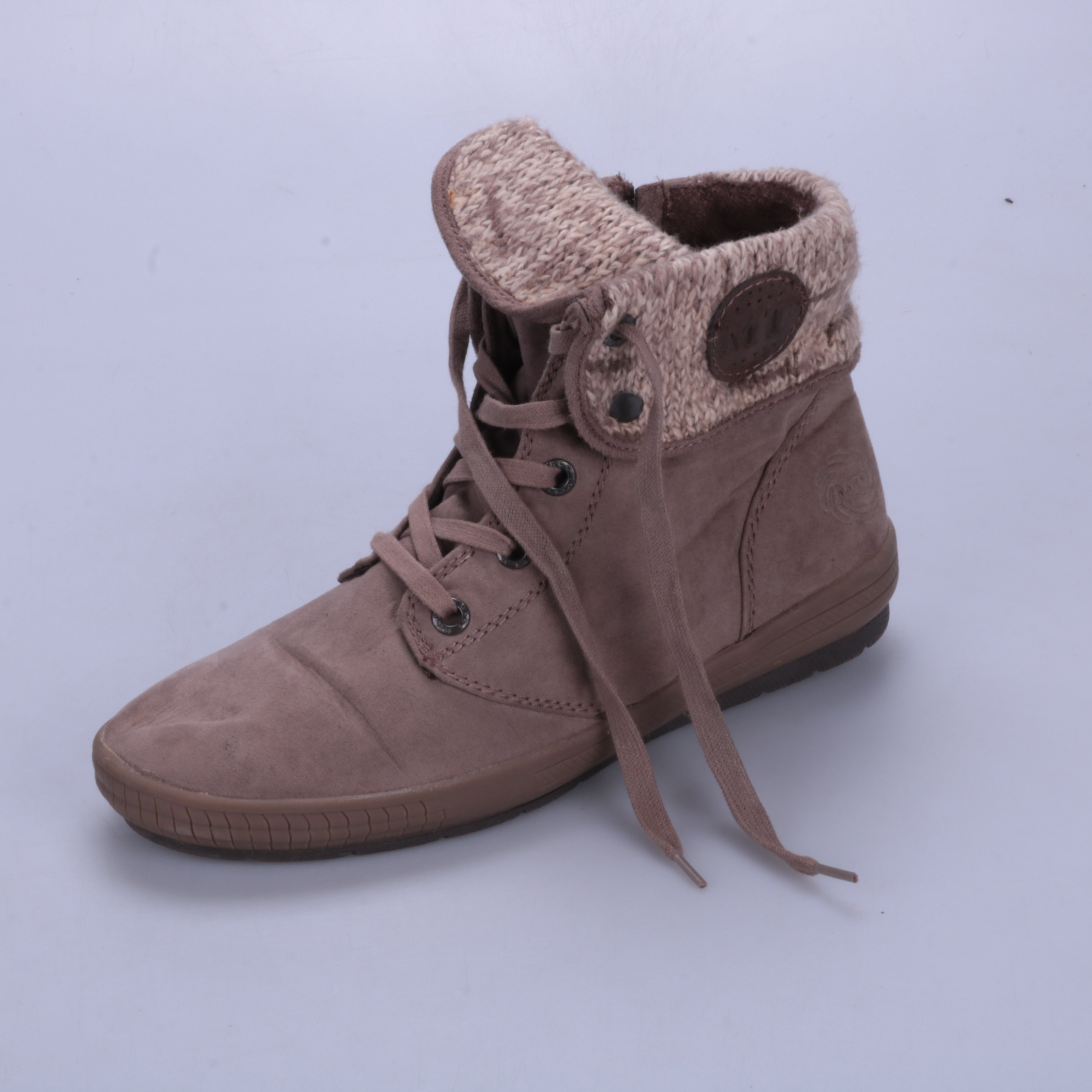 Женские ботинки на шнуровке с боковой молнией и мягким вязаным манжетом. Подойдут для прогулок в прохладную погоду и на каждый день. Удобно быстро надевать за счёт молнии и устойчивой подошвы.