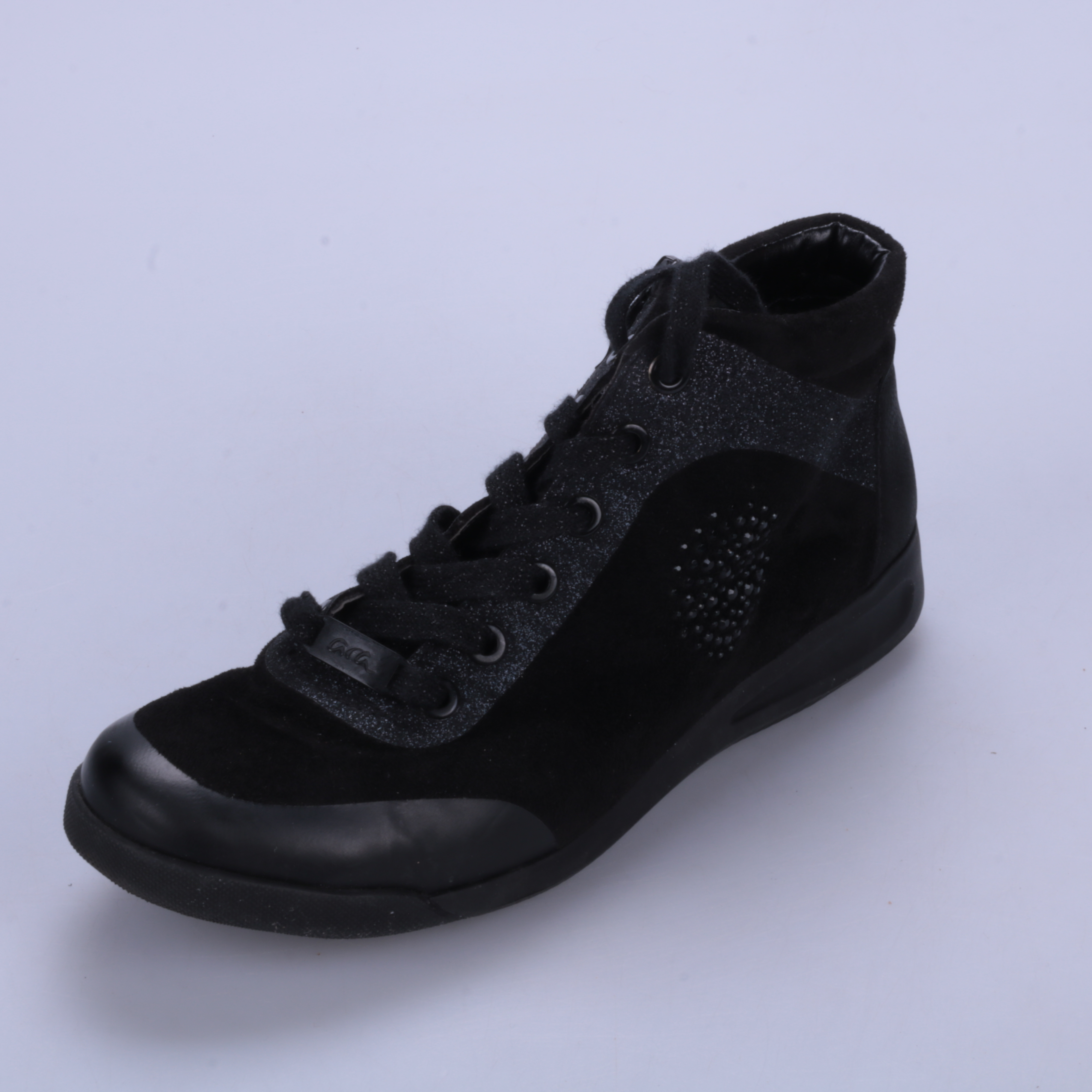 Женские ботинки Camper в чёрном цвете: шнуровка спереди и боковая молния, вставки с лёгким блеском. Подойдут на каждый день в демисезон, хорошо сочетаются с джинсами и платьями. Практичный плюс — удобная невысокая подошва и быстрый вход за счёт молнии.