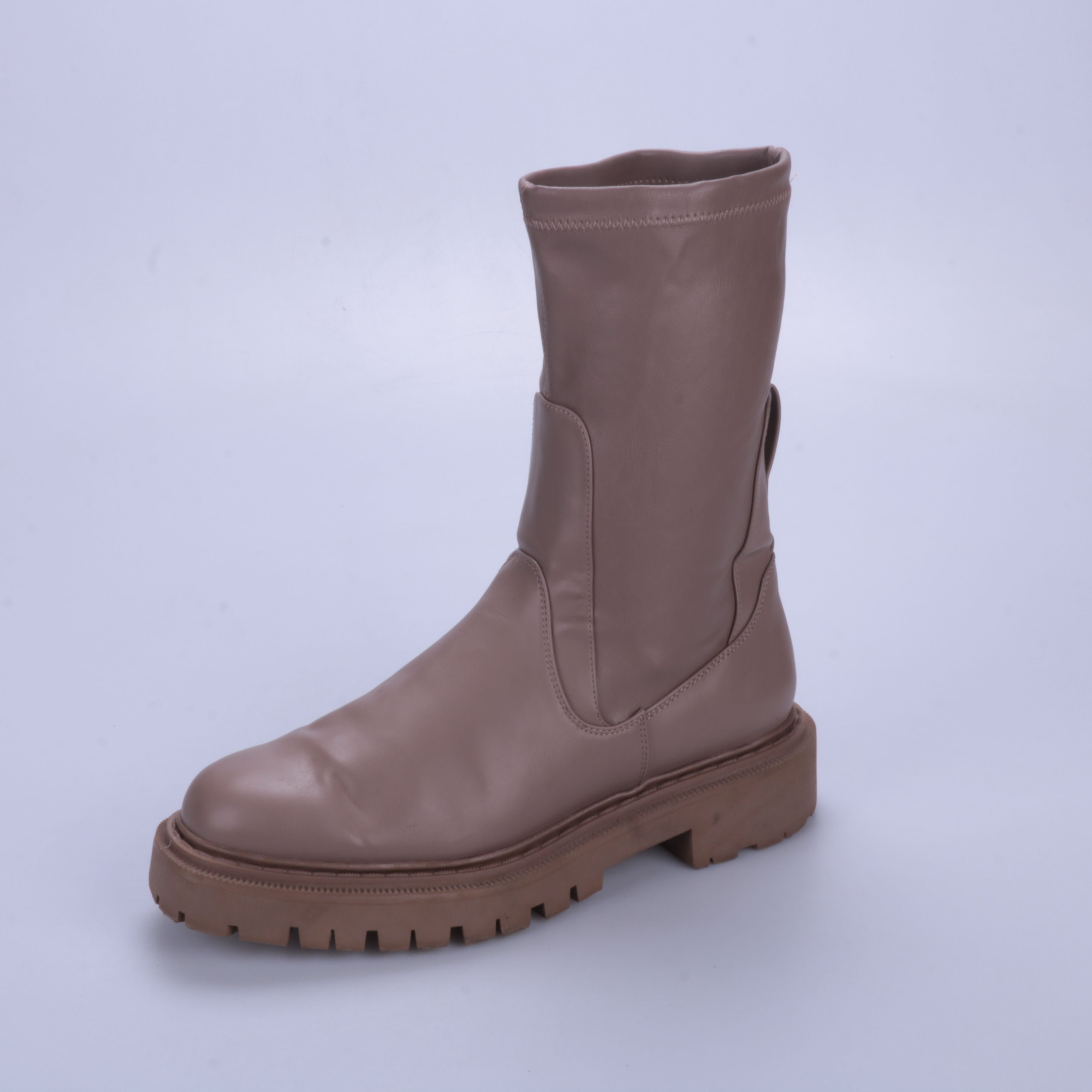 Женские сапоги без указания бренда, выполнены в лаконичном дизайне с массивной рифлёной подошвой. Подойдут для повседневных образов в межсезонье и прохладную погоду, хорошо сочетаются с джинсами и платьями. Устойчивая тракторная подошва даёт хорошее сц...