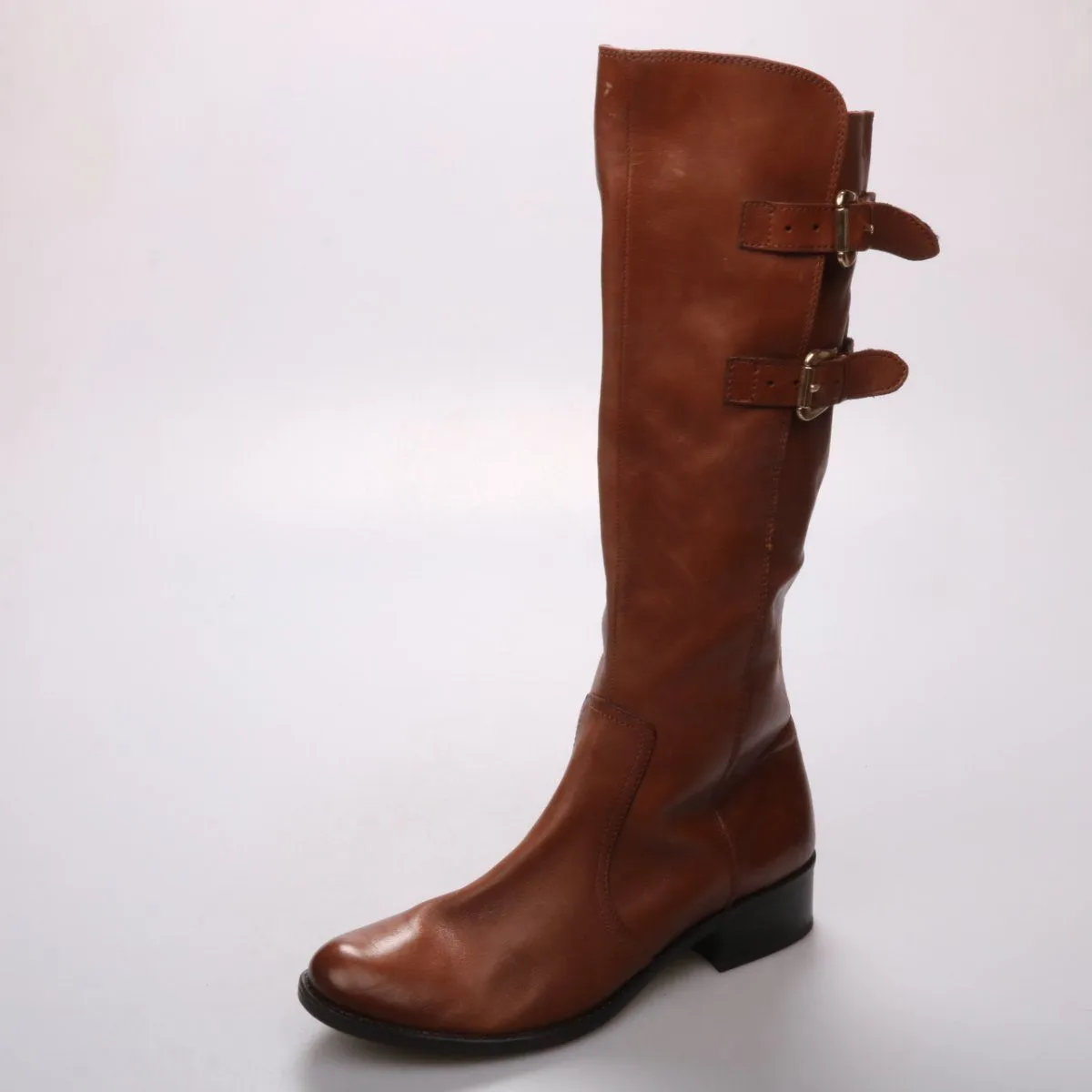 Женские сапоги Caprice из гладкой коричневой кожи с боковой молнией и ремешками у голенища. Подойдут для повседневной носки в межсезонье и прохладную погоду, хорошо сочетаются с джинсами и платьями. Устойчивый невысокий каблук и практичная подошва удобны для ходьбы.