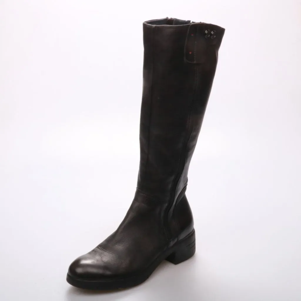 Женские сапоги Marco Tozzi из чёрной кожи с молнией по всей высоте и устойчивым каблуком. Подойдут для повседневной носки в межсезонье и прохладную погоду. Практичный плюс — рельефная подошва даёт лучшее сцепление на улице.