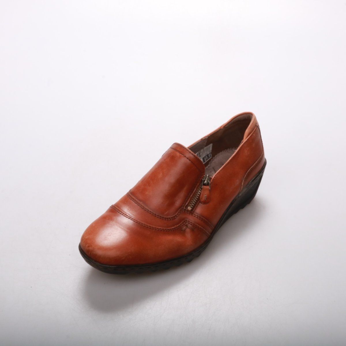 Женские кожаные туфли Luftpolster коричневого цвета на устойчивой танкетке, с боковой молнией для удобного надевания. Подойдут на каждый день и в офис в демисезон, хорошо сочетаются с брюками и юбками. Рельефная подошва даёт более уверенное сцепление и комфорт при ходьбе.
