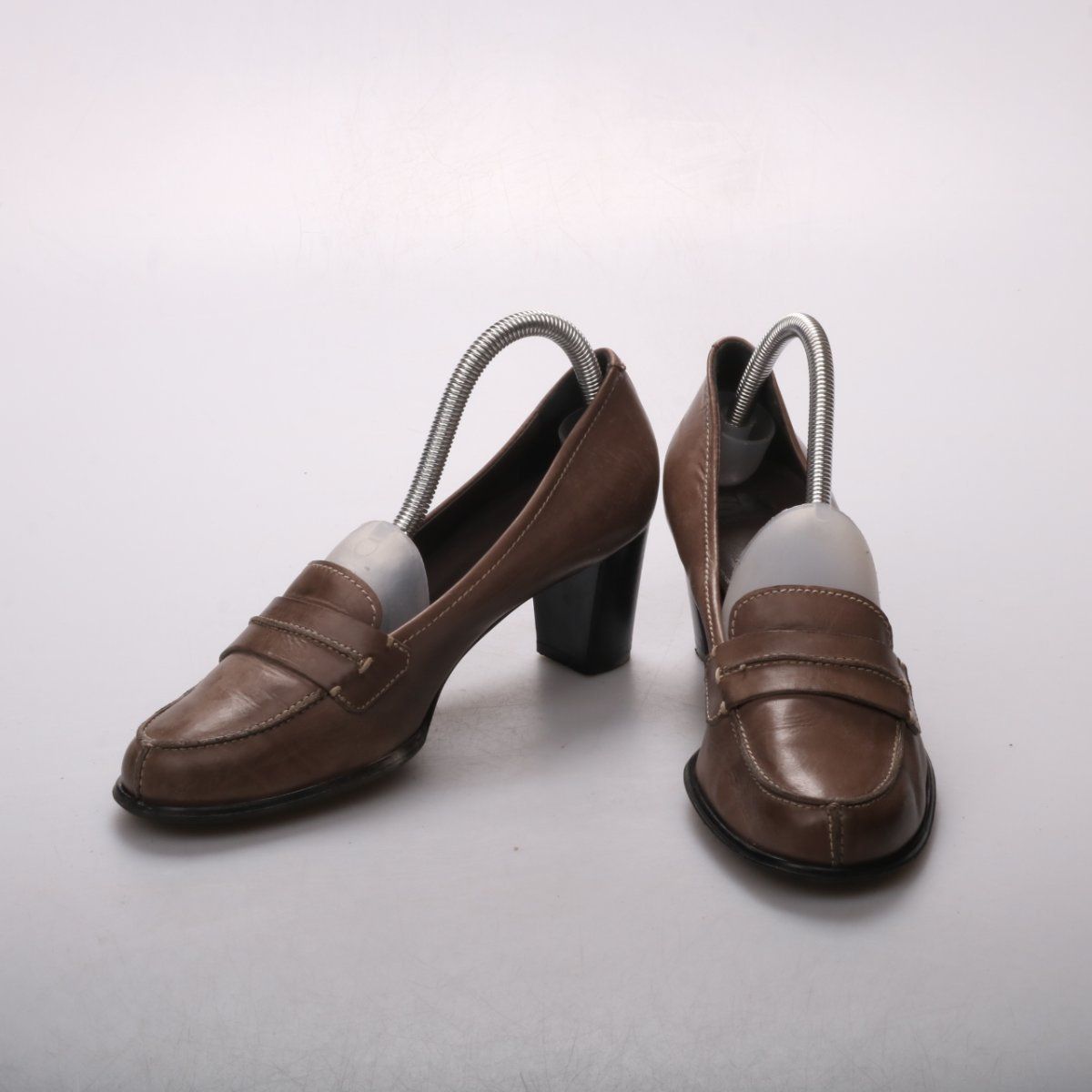 Женские туфли-лоферы на устойчивом каблуке, бренд не указан. Подойдут для офиса и повседневных образов в демисезон и круглый год. Практичное преимущество — удобная колодка и устойчивый каблук для длительной носки.