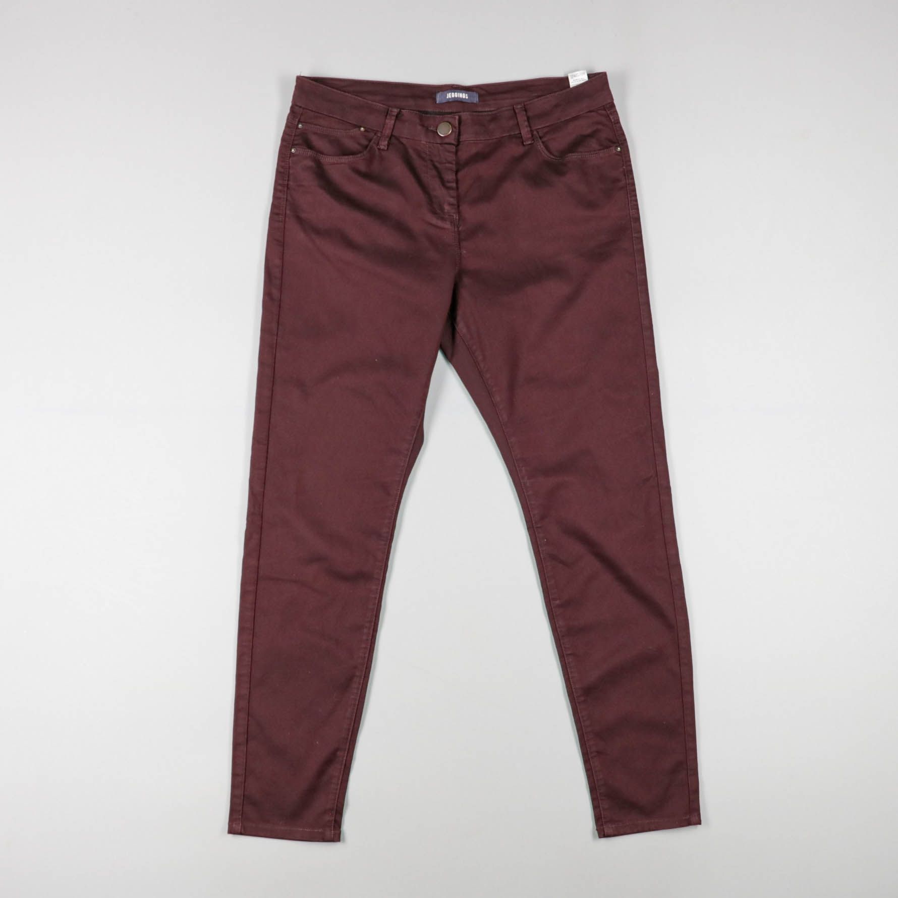 Женские брюки Jennyfer в бордовом цвете, зауженного кроя с классической посадкой и пятью карманами. Подойдут для повседневных образов и офиса в стиле casual, легко сочетаются с базовыми вещами. Практичный плотный материал хорошо держит форму и не требу...