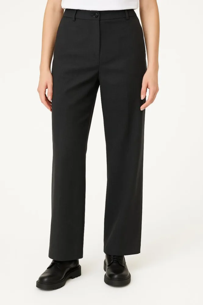 Брюки Ceramica прямого кроя в базовом чёрном цвете, ткань с добавлением эластана. Подойдут для офиса и повседневных образов с рубашкой, водолазкой или жакетом. Практичный плюс — материал меньше мнётся и комфортно тянется при движении.