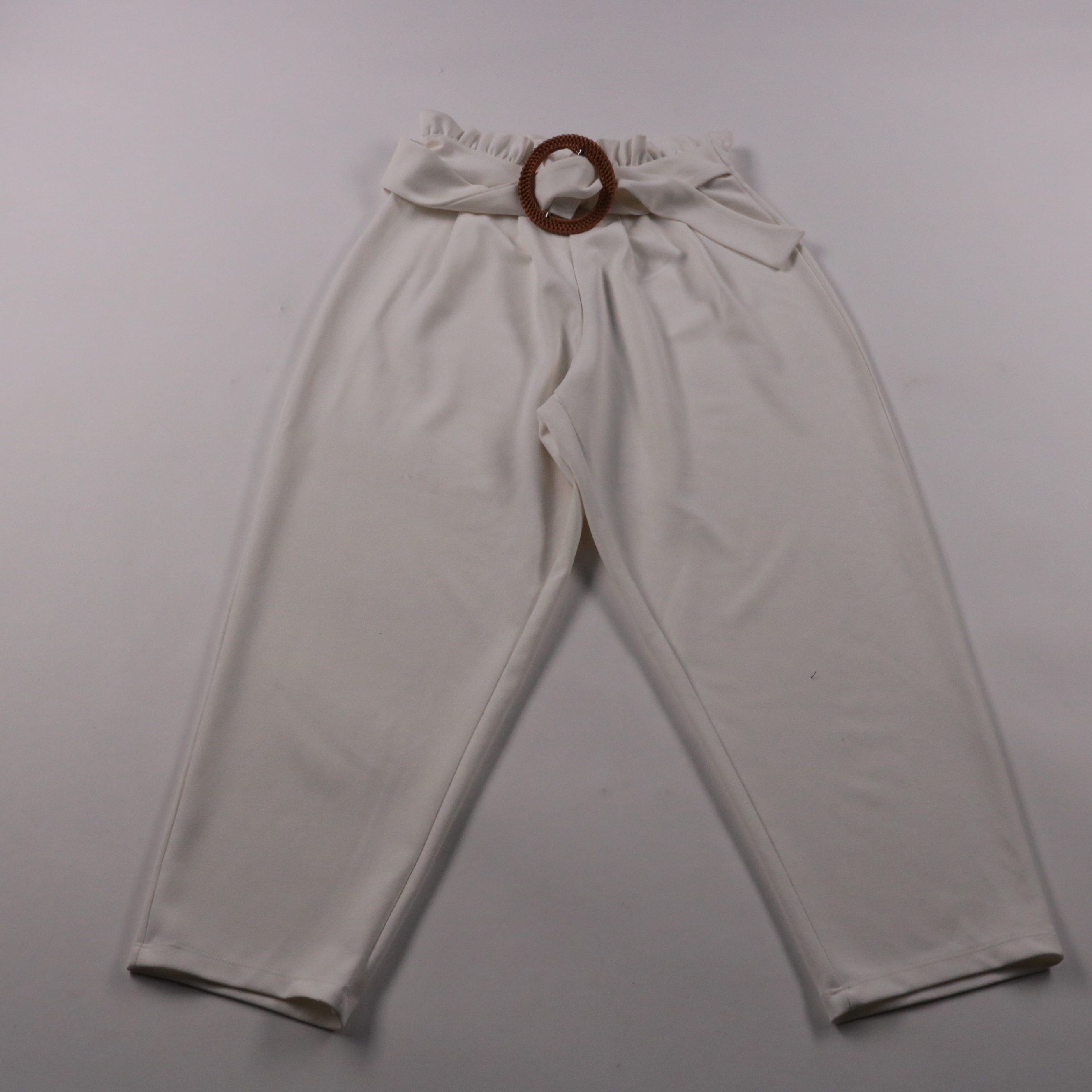 Женские брюки ASOS молочного цвета с высокой посадкой и поясом с декоративной круглой пряжкой. Подойдут для офиса и повседневных образов с рубашкой или топом. Материал тянется и почти не мнётся, поэтому удобно носить весь день.