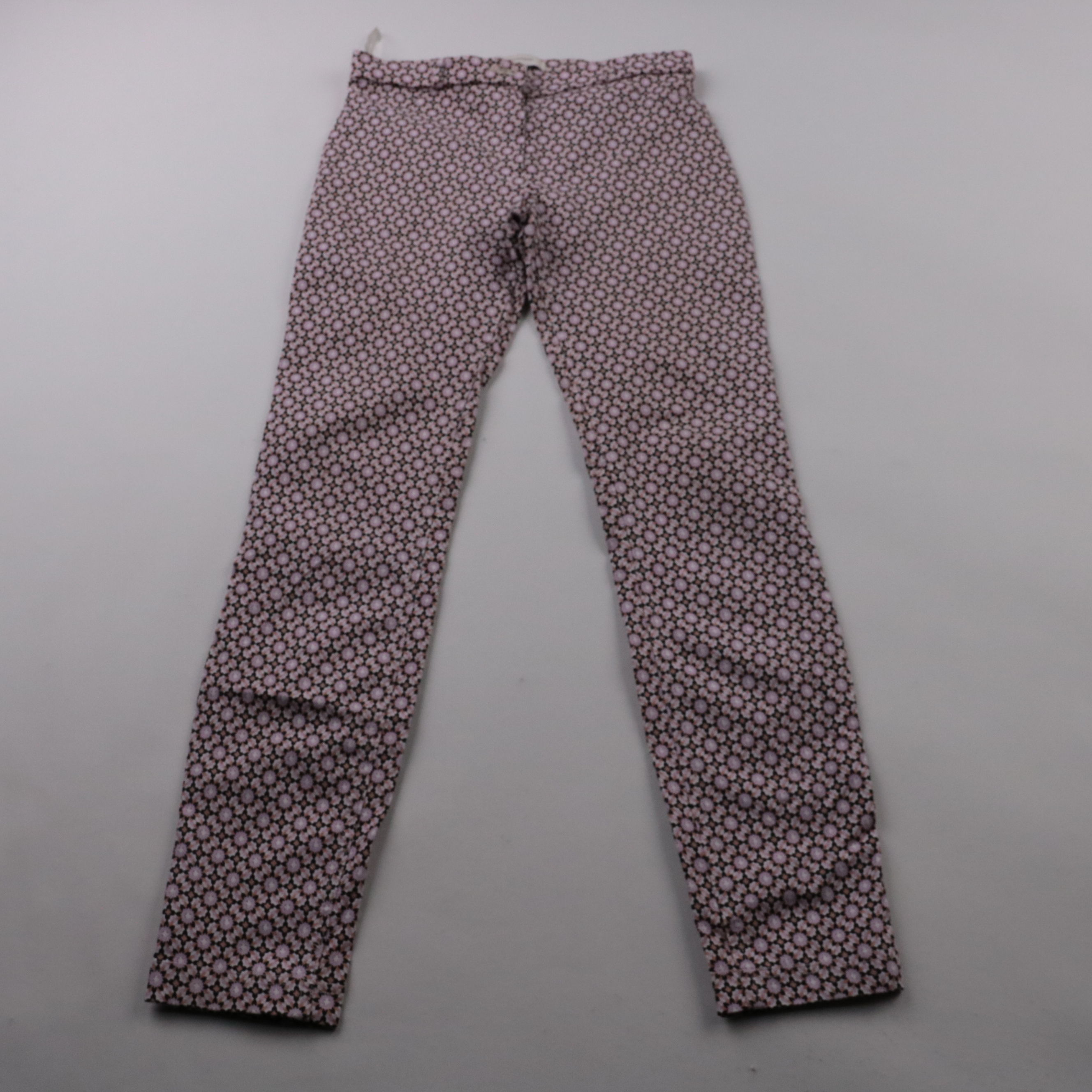 Женские брюки Atmosphere с мелким геометрическим принтом в розово-чёрной гамме. Подойдут для повседневных и офисных образов в тёплый сезон или в помещении. Ткань с добавлением эластана слегка тянется и комфортно сидит по фигуре.