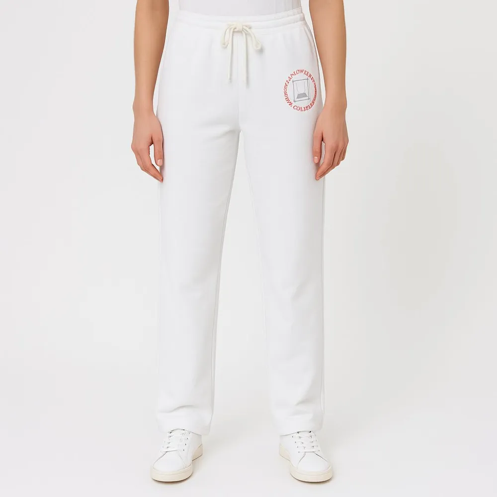 Женские спортивные брюки Primark x Miffy белого цвета с эластичным поясом на шнурке и небольшим принтом на бедре. Подойдут для дома, прогулок и образов в стиле casual. Мягкий футер и удобная посадка делают их практичными на каждый день.