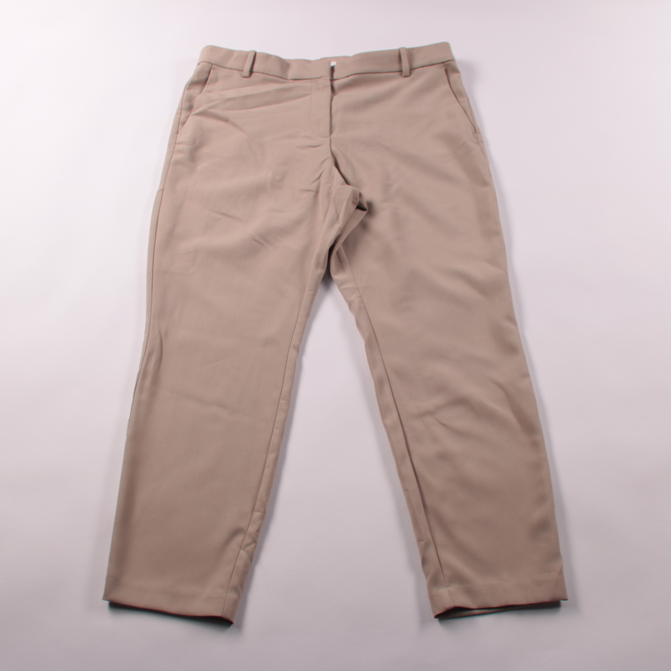 Женские классические брюки H&M прямого кроя в бежевом цвете. Подойдут для офиса и повседневных образов с рубашкой, жакетом или трикотажем. Практичная ткань почти не мнётся и легко сочетается с базовой обувью.