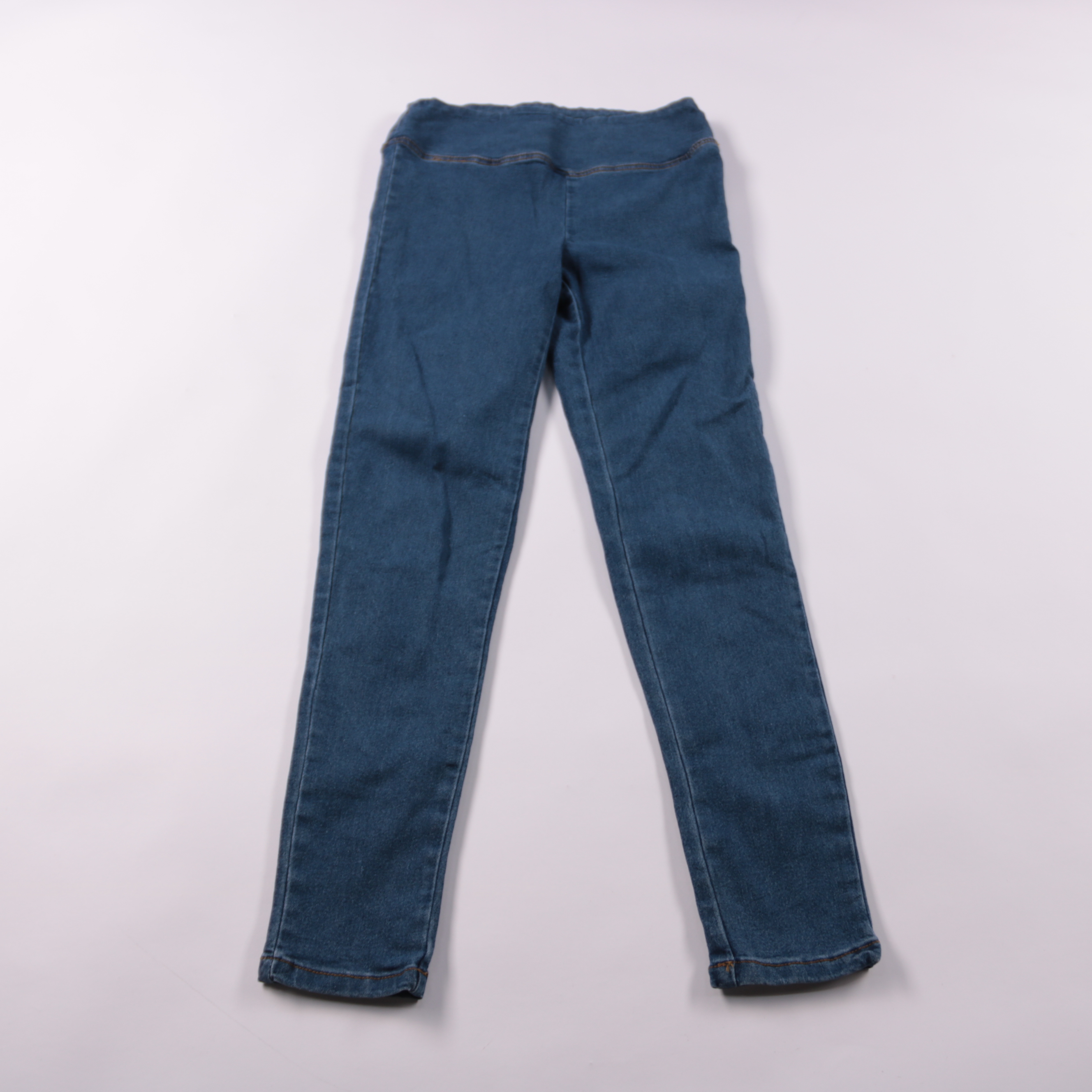 Женские брюки из денима, без указания бренда, в синем цвете. Подойдут для повседневных образов в городе и на работу с базовыми вещами. Плотная ткань хорошо держит форму и рассчитана на частую носку.