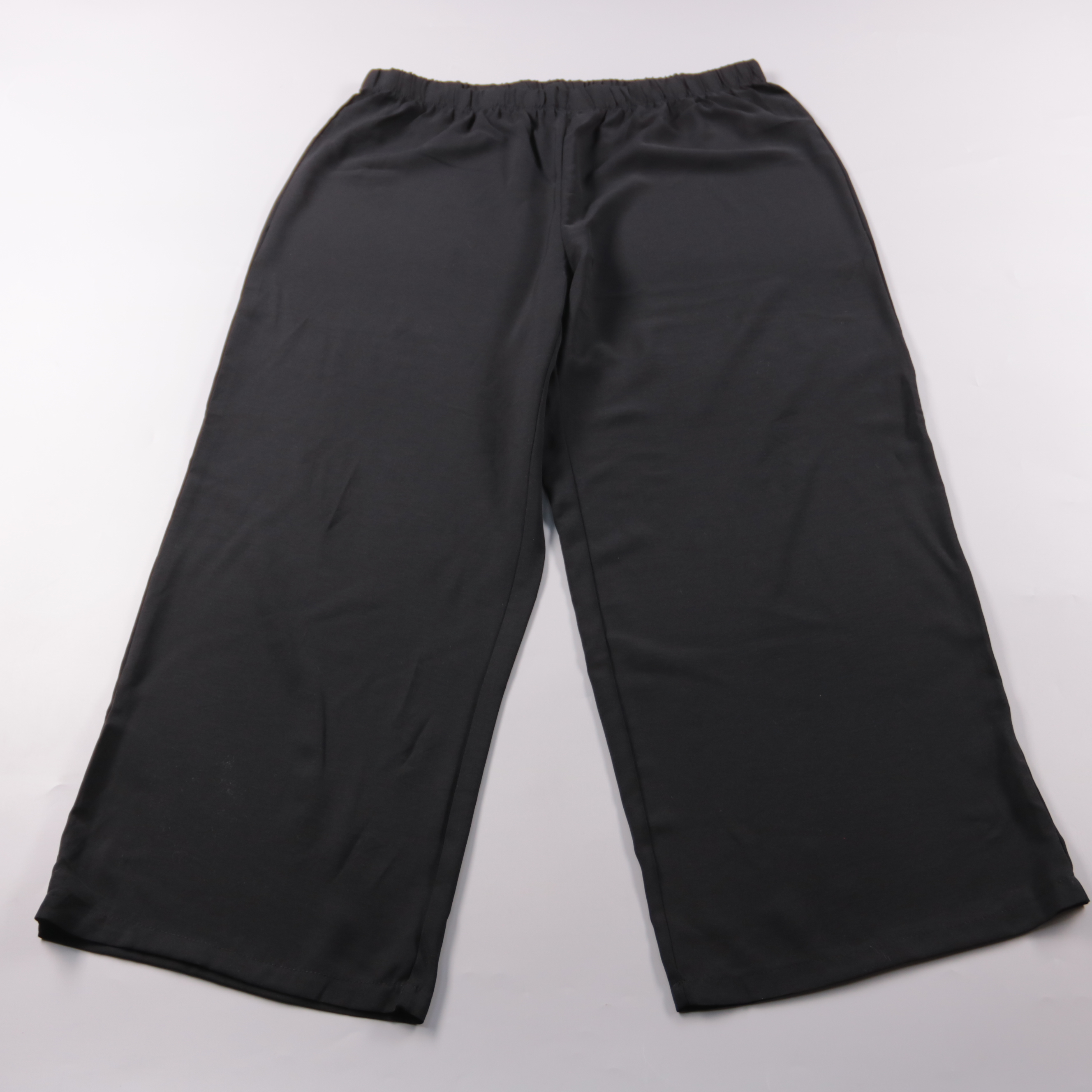 Женские брюки Shein Curve прямого свободного кроя с эластичным поясом, цвет чёрный. Подойдут для повседневной носки и офисных образов с рубашкой или джемпером. Практичный плюс — ткань из полиэстера почти не мнётся и легко стирается.