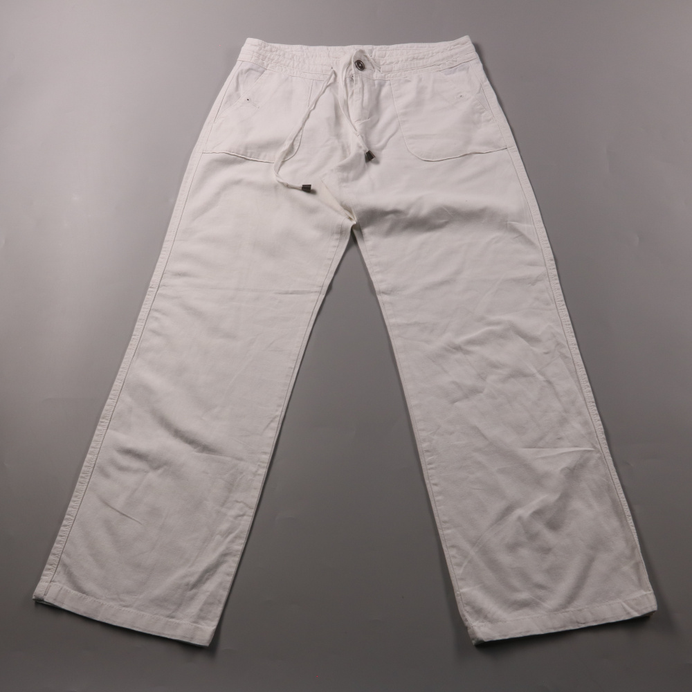 Белые летние брюки F&F из льна с добавлением хлопка, с прямыми штанинами и регулируемым поясом на шнурке. Подойдут для повседневных образов и отдыха в жаркую погоду. Лён хорошо дышит и комфортно носится в течение дня.