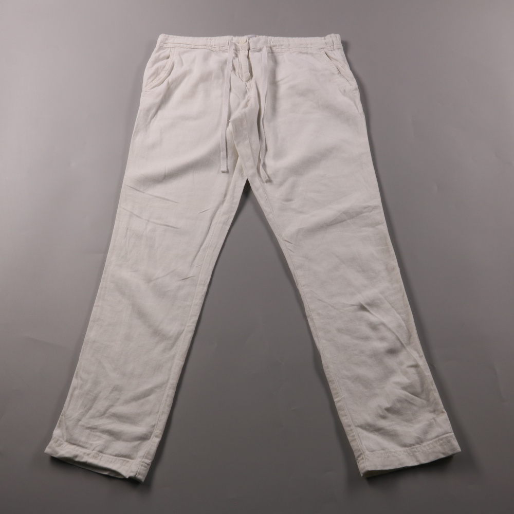 Льняные брюки-чиносы Next светлого цвета, с удобной посадкой и завязками на поясе. Подойдут для лета и отпуска, хорошо смотрятся с футболками и рубашками. Лён в составе делает ткань дышащей и комфортной в жару.