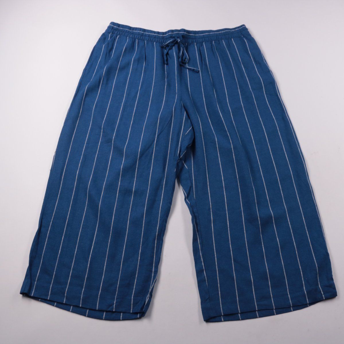 Женские брюки-киюлоты George в цвете navy с белой вертикальной полоской и укороченной широкой штаниной. Подойдут для летних повседневных образов и отдыха благодаря лёгкой ткани и свободному крою. Эластичный пояс со шнурком помогает быстро отрегулировать посадку.