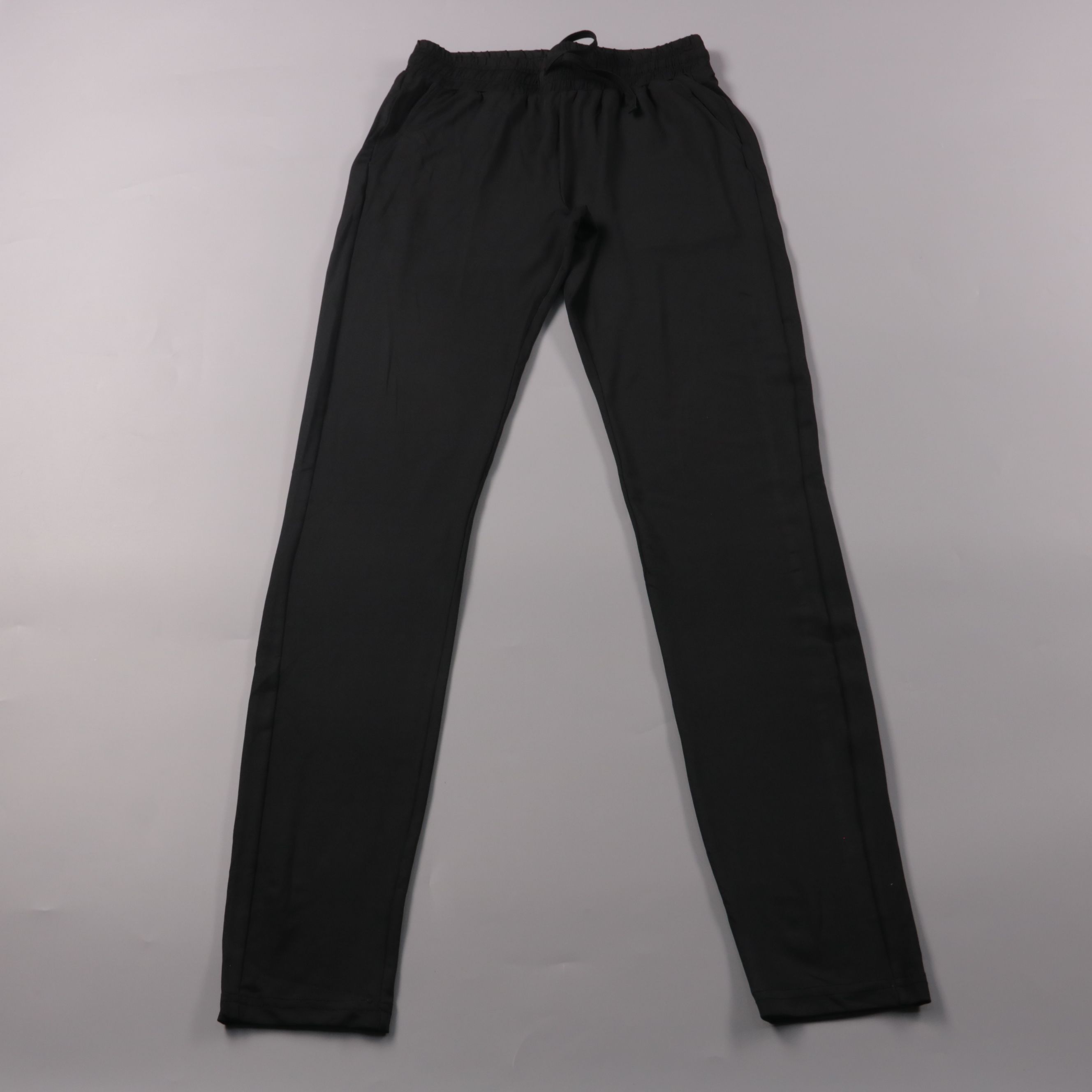 Женские чёрные брюки Liz Deyy зауженного кроя с эластичным поясом и шнурком. Подойдут для повседневной носки и поездок, когда нужна удобная посадка без ремня. Практичный плюс — ткань с эластаном слегка тянется и не сковывает движения.