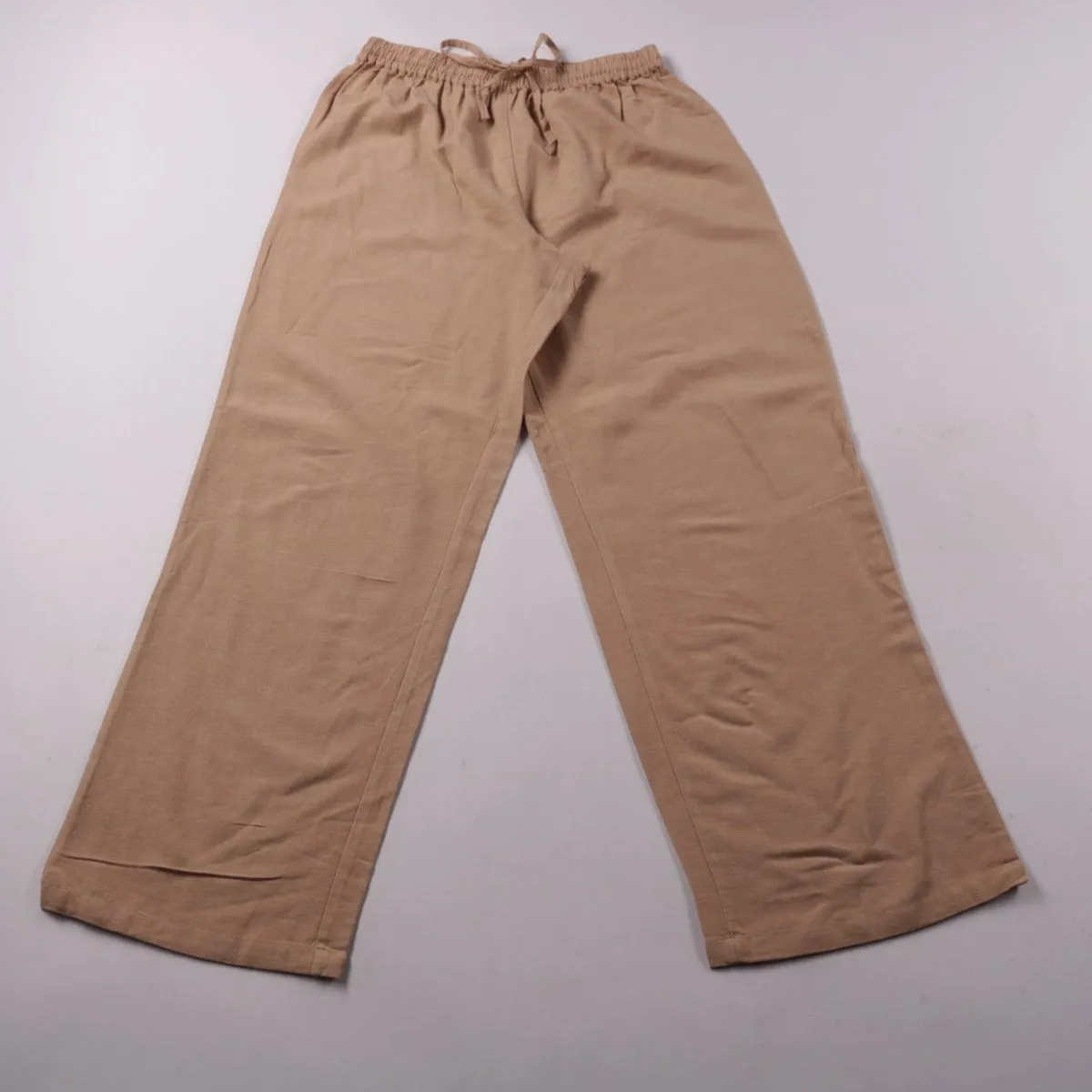 Брюки Pieces широкого кроя (палаццо) в бежевом оттенке Nomad, с эластичным поясом и завязками. Подойдут для повседневных образов в городе и в поездках, когда хочется свободы движений. Смесь вискозы, хлопка и льна делает ткань более «дышащей» и комфортной в носке.