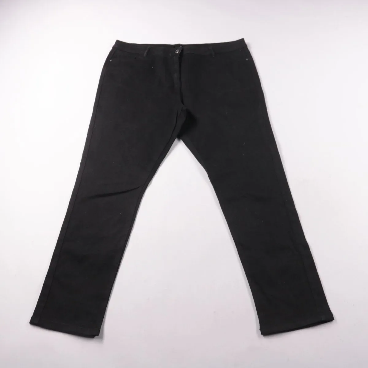 Чёрные женские брюки зауженного кроя с застёжкой на молнию и пуговицу и шлёвками под ремень. Подойдут для офиса и повседневных образов в любое время года. Плотная ткань хорошо держит форму и удобно сочетается с базовой обувью и верхом.