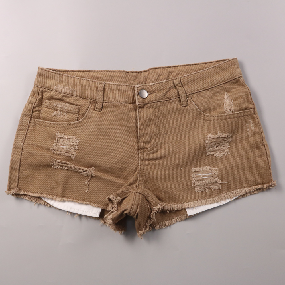 Джинсовые шорты Pieces цвета хаки с декоративными потертостями и необработанным краем. Подойдут для летних прогулок и отдыха, легко сочетаются с футболками и топами. Плотный хлопок хорошо держит форму и комфортен в носке.