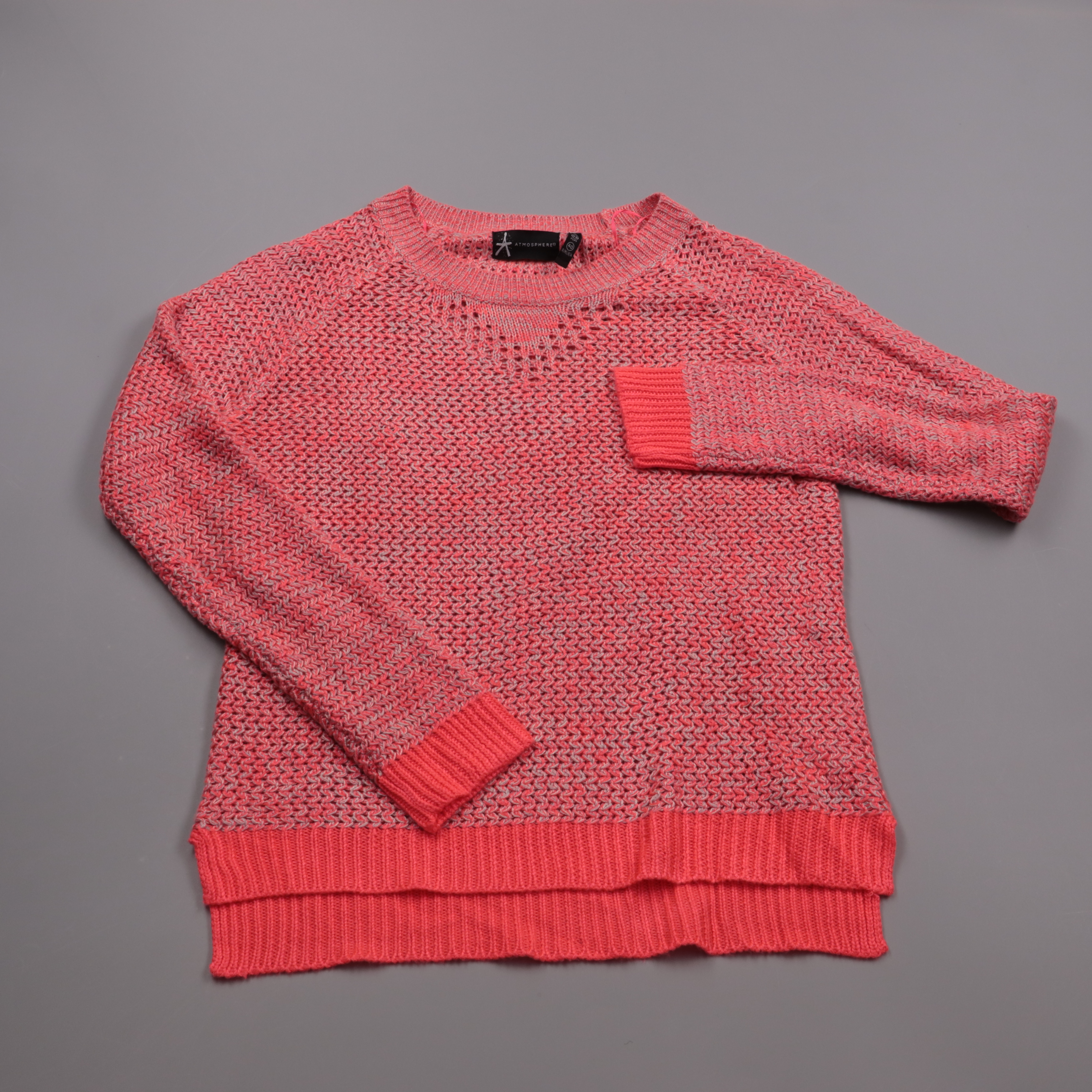 Вязаный свитер Atmosphere кораллового цвета с меланжевой фактурой и круглым вырезом. Подойдёт для повседневных образов в прохладную погоду, хорошо сочетается с джинсами и юбками. Лёгкий акриловый трикотаж прост в уходе и быстро сохнет.