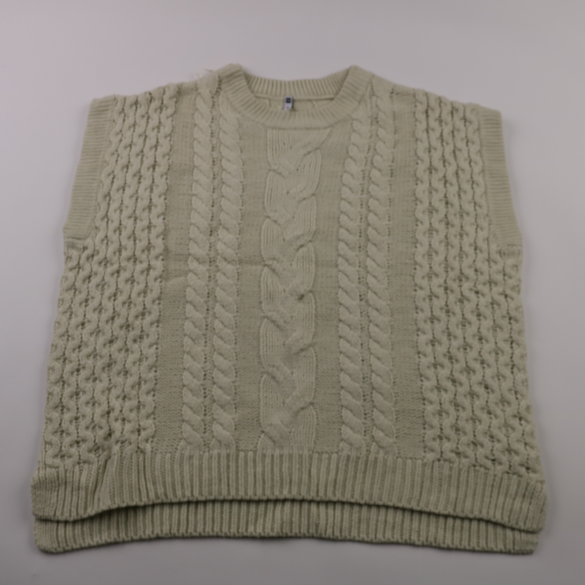 Вязаный жилет HEMA в молочно-бежевом цвете с фактурным узором «косы» и круглым вырезом. Подойдёт для многослойных образов с рубашкой или водолазкой на прохладную погоду. Плотная вязка хорошо держит форму и сохраняет тепло.