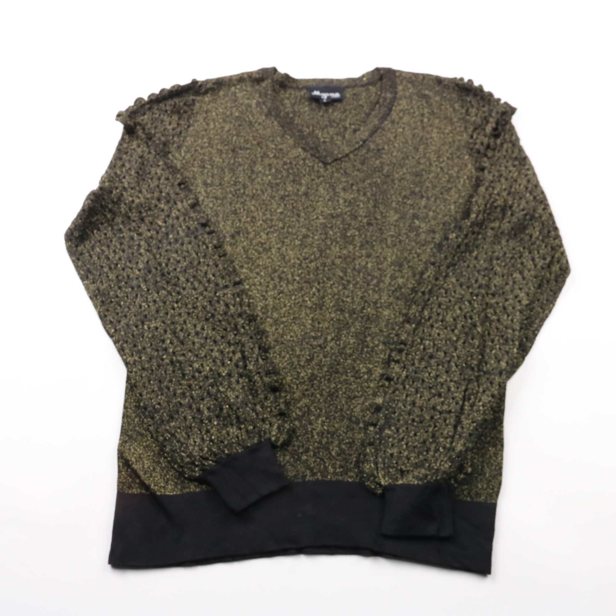 Свитер Myrna by NED с V-образным вырезом и фактурной вязкой с люрексом. Подойдёт для повседневных образов и выхода вечером, хорошо сочетается с юбками и брюками. Вискоза в составе приятна к телу и даёт комфортную посадку.