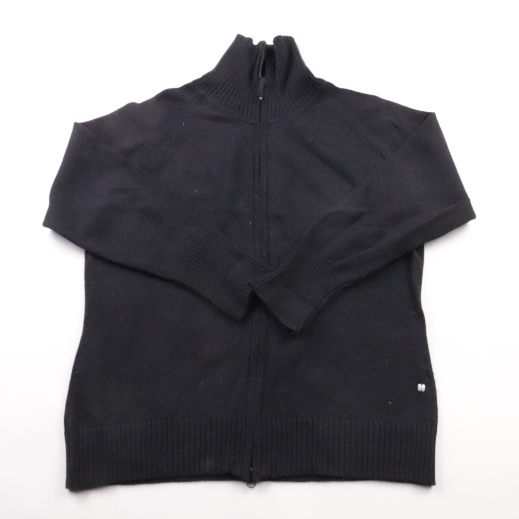 Кофта на молнии Yessica из плотного трикотажа, чёрного цвета, с высоким воротником-стойкой. Подойдёт для повседневной носки и как второй слой в прохладную погоду. Практична за счёт застёжки-молнии и натурального хлопка.