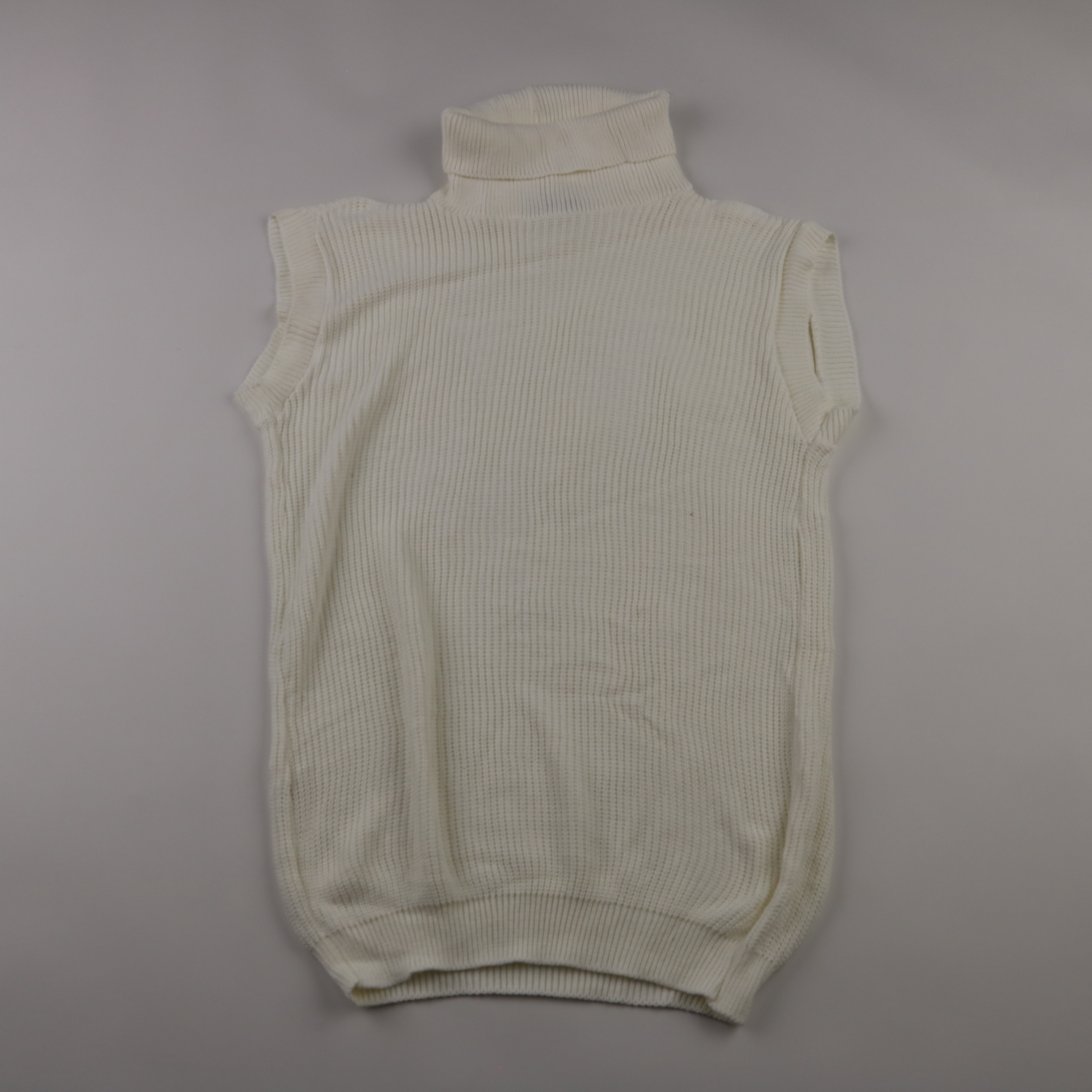 Трикотажная водолазка-безрукавка Naanaa молочного цвета в рубчик с высоким воротником. Подойдёт для офисных и повседневных образов, удобно носить как самостоятельный топ или первым слоем под жакет/кардиган. Практичный плюс — эластичная вязка хорошо сад...