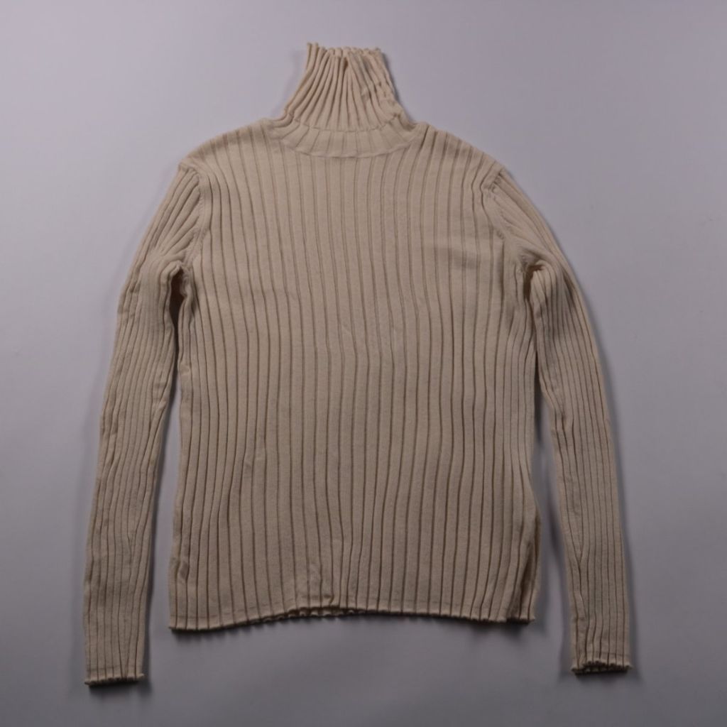 Водолазка в рубчик с высоким воротом, бренд на бирке не указан (маркировка Woolmark/Schurwolle). Подойдёт для зимы и прохладной демисезонной погоды, удобно носить как базовый слой под пиджак или куртку. Практичное преимущество — тёплый эластичный трико...