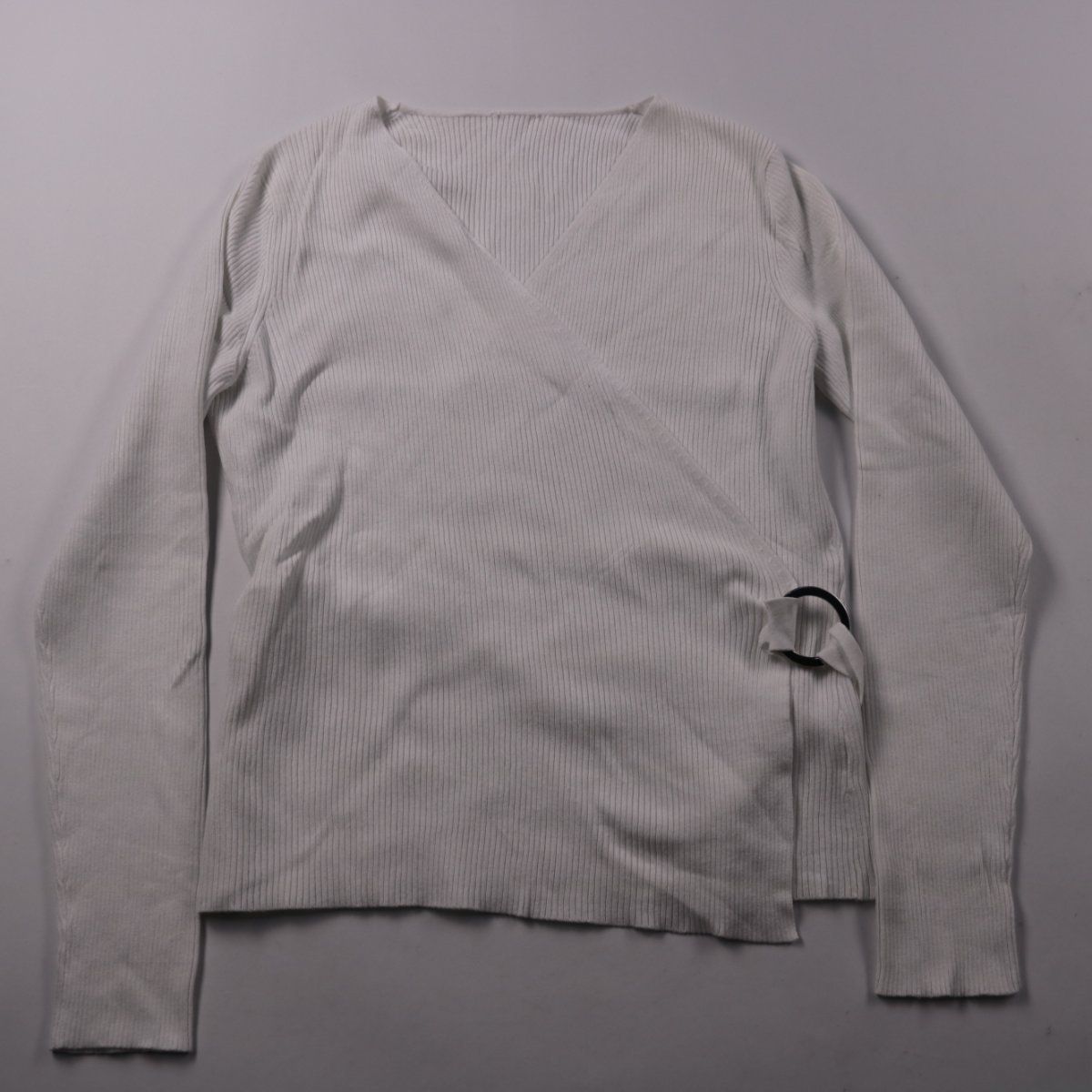 Трикотажный кардиган на запах с V-образным вырезом и длинным рукавом. Подойдёт для повседневных образов и в офис, удобно регулировать посадку поясом с кольцом.