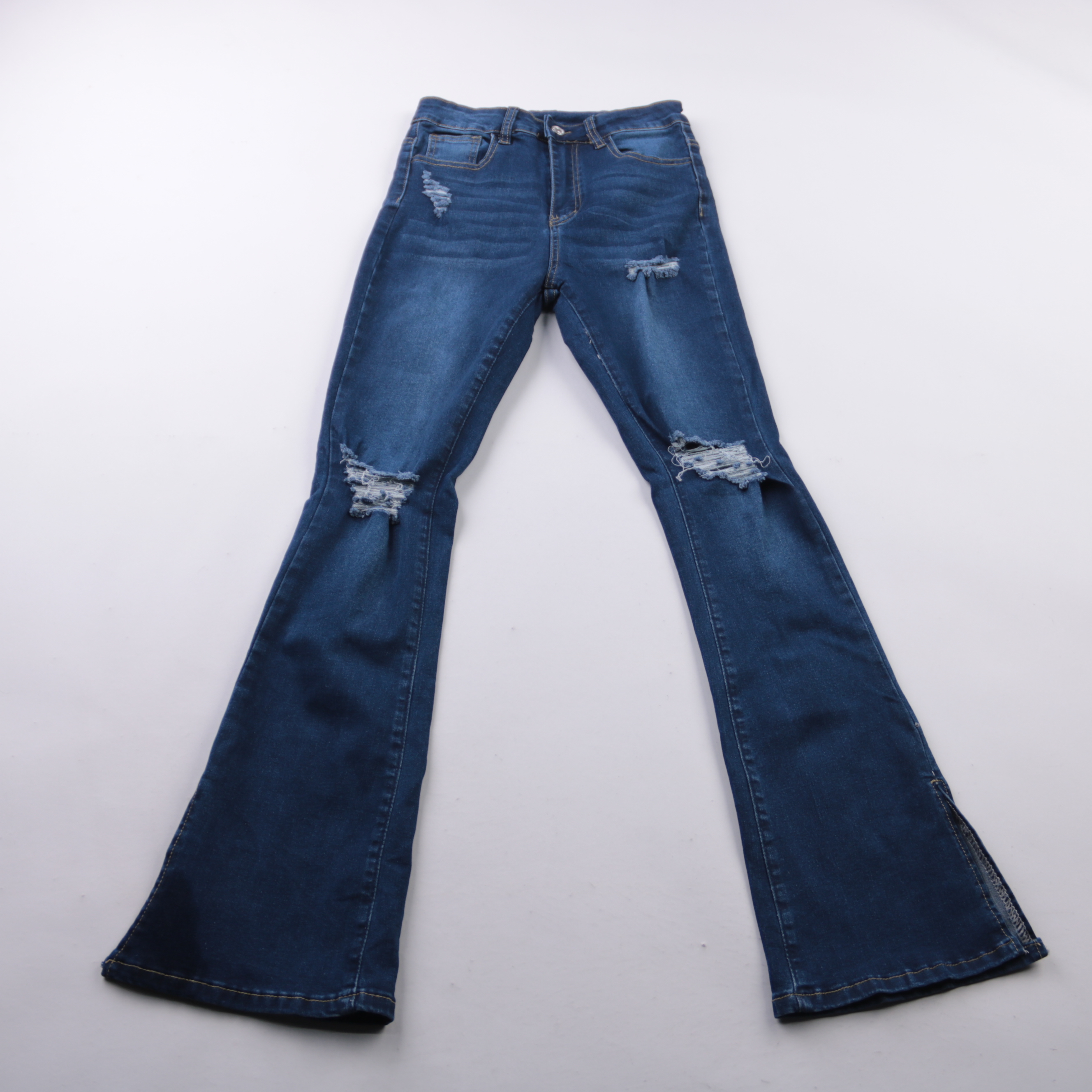 Джинсы Shein из синего денима с декоративными потертостями и небольшими разрезами. Подойдут для повседневных образов с кедами, ботинками или каблуком. Ткань с добавлением эластана комфортно садится по фигуре и не сковывает движения.