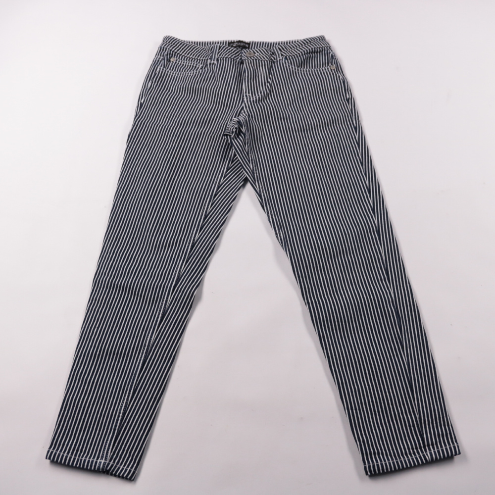 Женские джинсы UP2FASHION в тонкую вертикальную полоску, прямой посадки. Подойдут для повседневных образов и офиса в стиле casual — хорошо смотрятся с однотонными рубашками и свитерами. За счёт эластана в составе ткань немного тянется и комфортнее сиди...