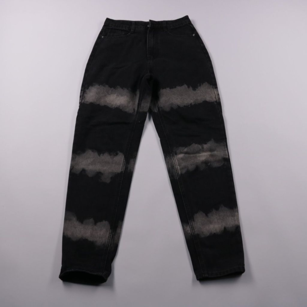 Женские джинсы Riot high rise mom jean из плотного хлопкового денима, чёрные с серым выбеленным рисунком в полосы. Модель «mom» с высокой посадкой, подойдёт для повседневных образов и стритстайла. Практичный плотный деним держит форму и легко сочетаетс...