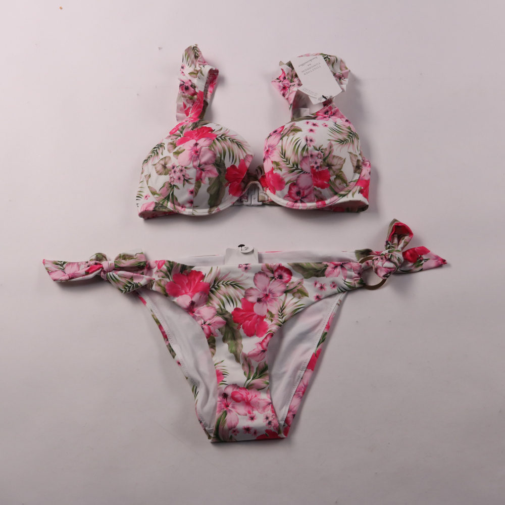 Раздельный купальник Hunkemoller с цветочным принтом: лиф на косточках и плавки бикини с завязками по бокам. Подойдёт для пляжа и отдыха у бассейна, а также для летних поездок. Плотная эластичная ткань хорошо держит форму и удобно сидит.