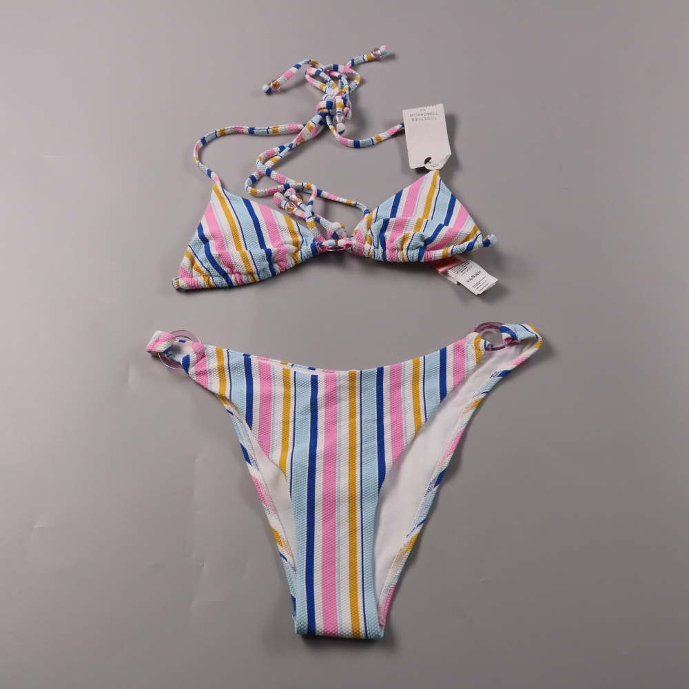Раздельный купальник & Other Stories в полоску: треугольный топ на завязках и плавки с высокой посадкой и вырезом high leg. Подойдёт для пляжа, бассейна и отпуска в тёплую погоду. Быстро сохнет и удобно регулируется по фигуре за счёт завязок.