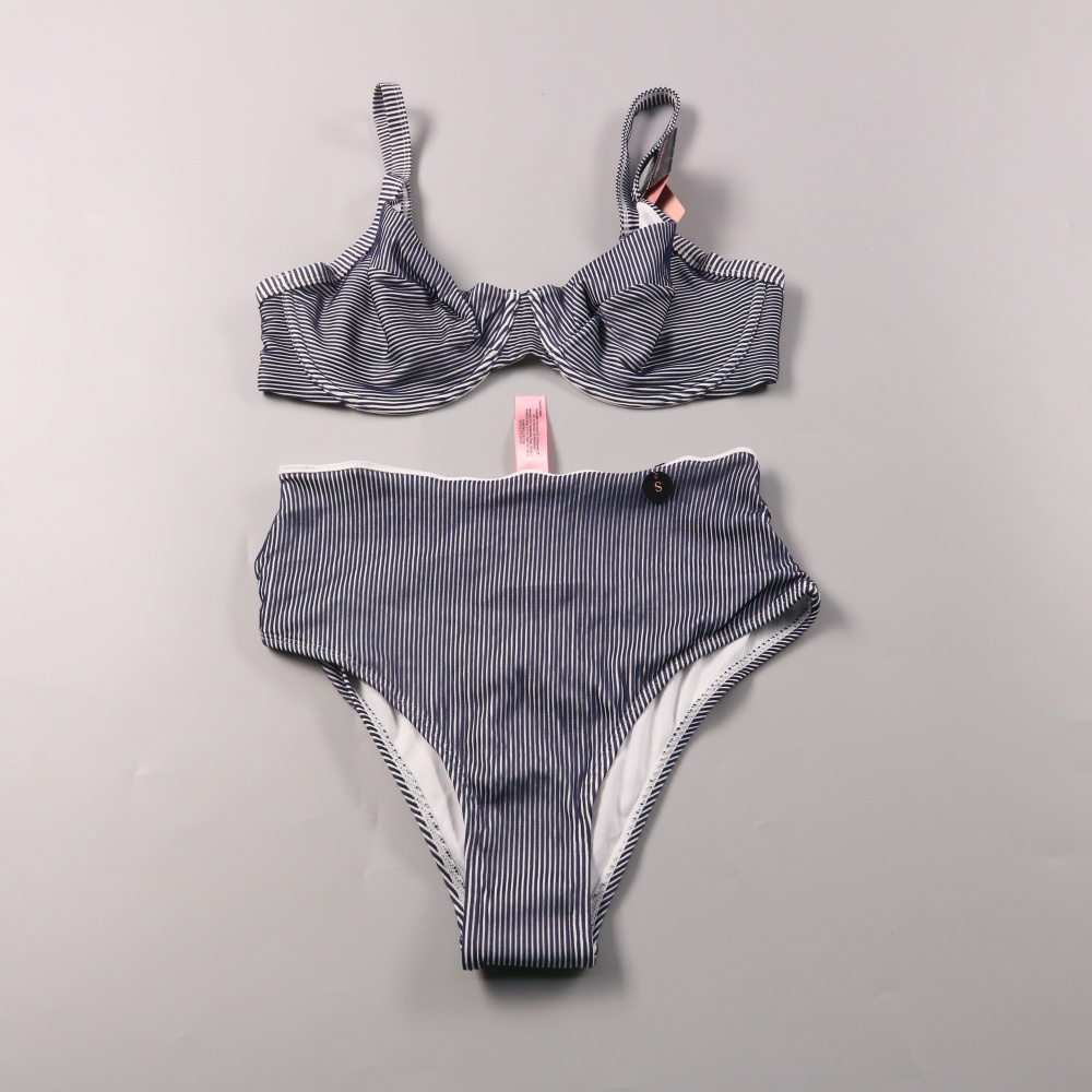 Раздельный купальник Hunkemöller в сине-белую полоску: лиф на косточках с бретелями и высокие плавки. Подойдёт для пляжа и бассейна, хорошо держит форму и удобно сидит за счёт эластичного материала.