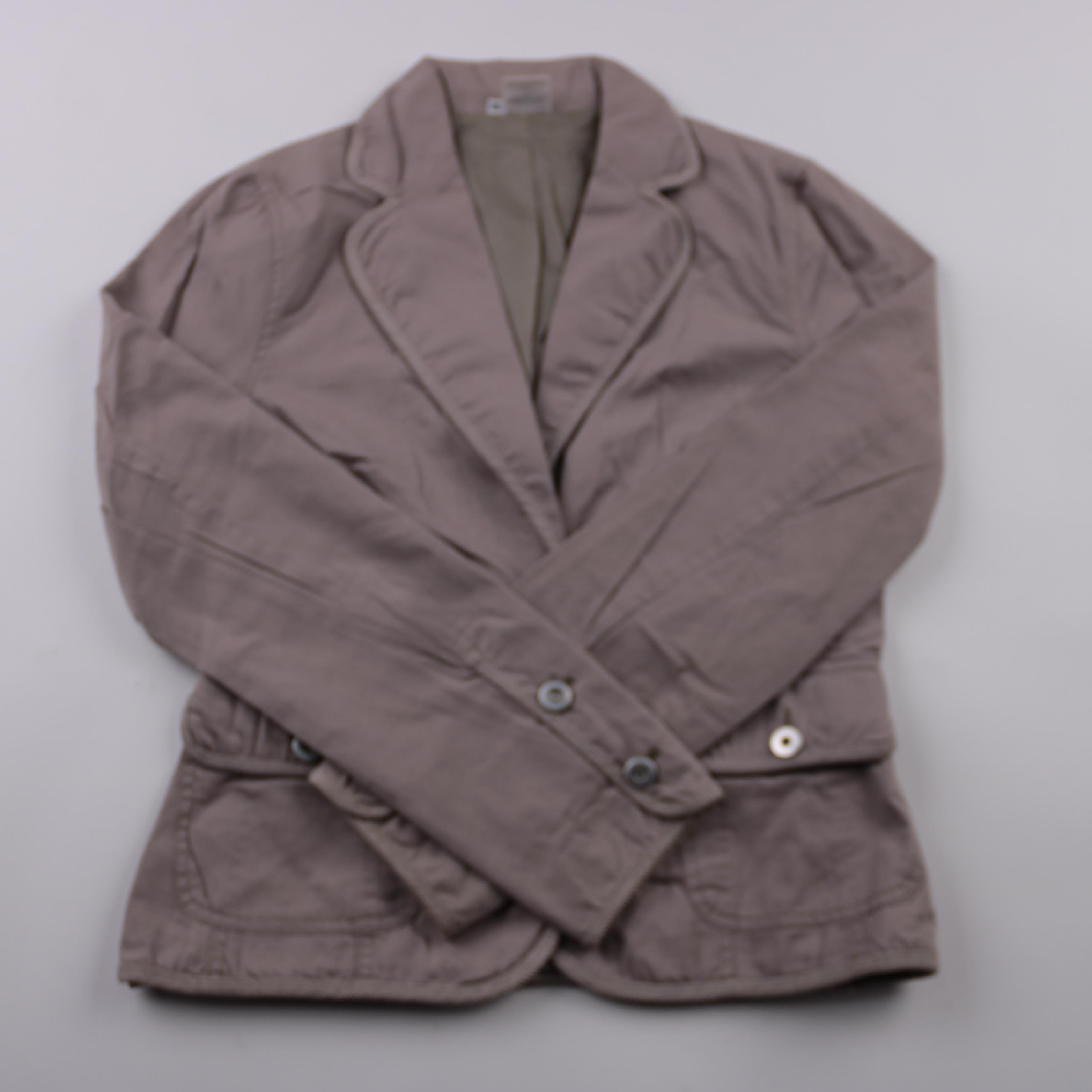 Женский пиджак Miss Etam в спокойном серо-кофейном оттенке, из 100% хлопка. Подойдёт для офиса и повседневных образов с джинсами или платьем, благодаря классическому крою с лацканами. Есть подкладка из полиэстера, поэтому пиджак удобно надевать на блуз...
