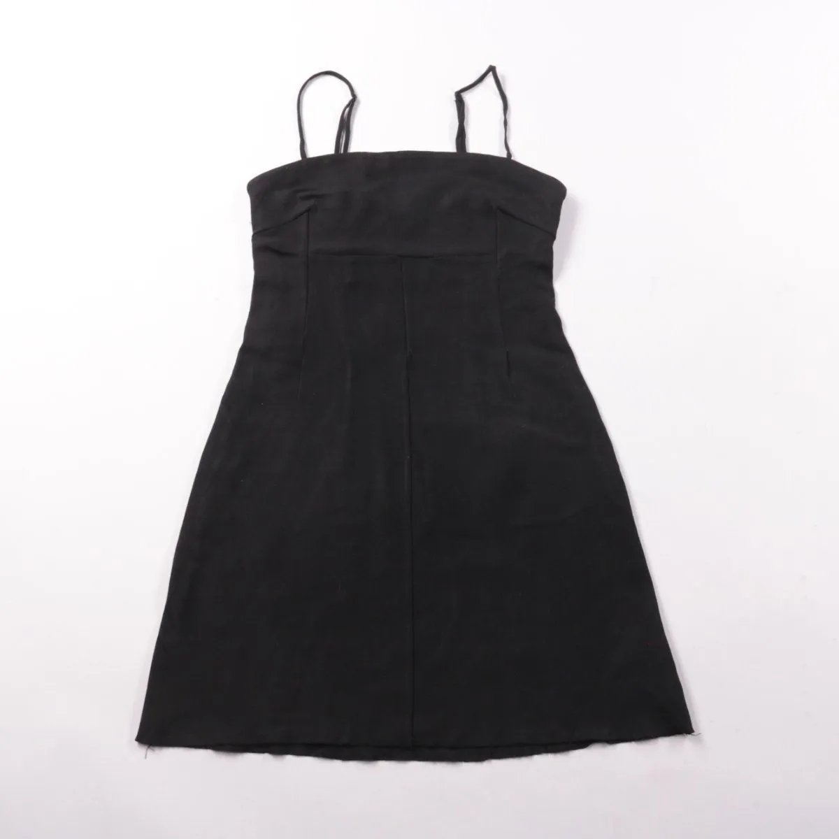 Чёрное платье Silence + Noise с лаконичным лифом и тонкими бретелями, длина ближе к мини. Подойдёт для повседневных образов и выхода вечером, легко сочетается с жакетом или кардиганом. Эластичная подкладка помогает изделию лучше садиться по фигуре.