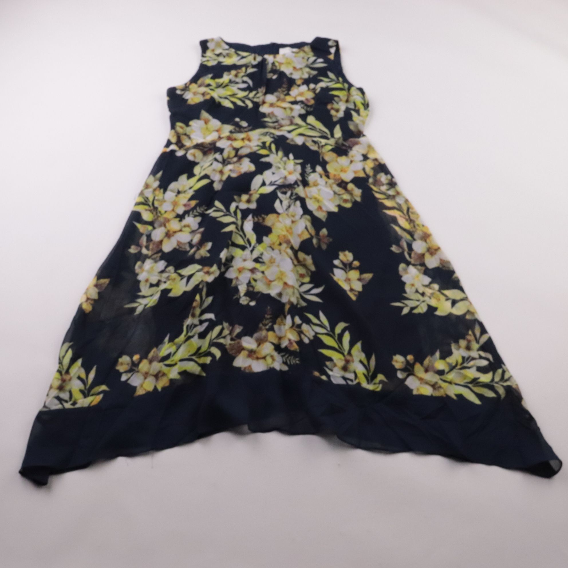 Женское платье Wallis Petite с цветочным принтом на тёмном фоне, без рукавов и с расклешённой юбкой. Подойдёт для лета и тёплой весны — прогулок, офиса или повседневных выходов. Практично тем, что не мнётся и легко сочетается с однотонной обувью и жаке...