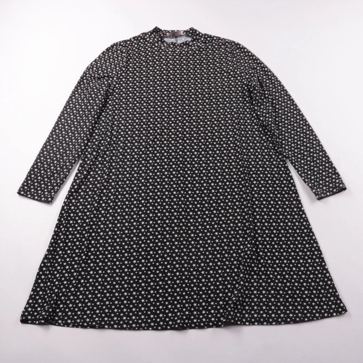 Повседневное платье Papaya Woman чёрного цвета с белым принтом «звёзды», прямого/свободного силуэта и с длинным рукавом. Подойдёт для повседневных образов и на прохладную погоду в межсезонье. Ткань со стрейчем, поэтому комфортно сидит и неприхотлива в уходе.