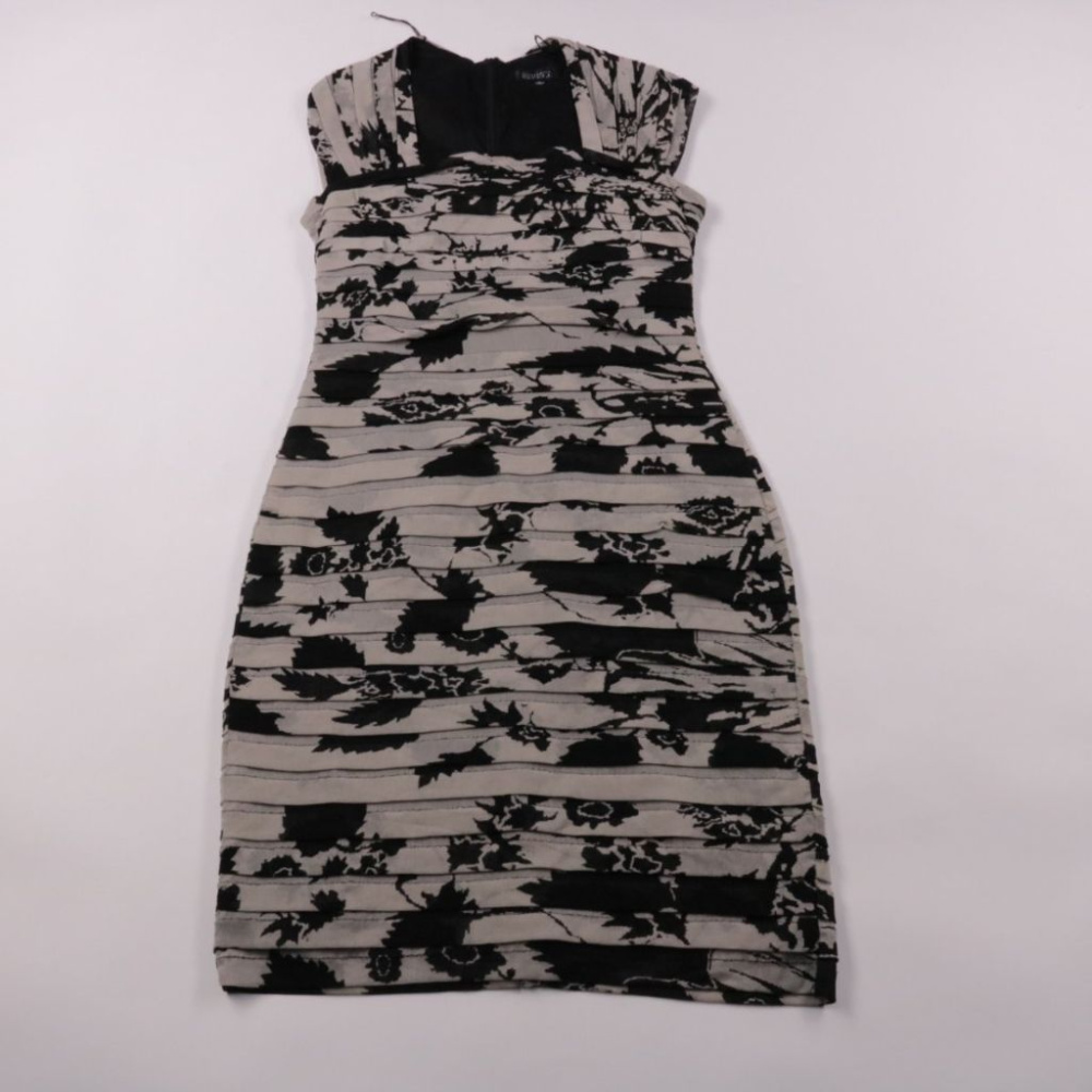 Платье Adrianna Papell, облегающего силуэта, с черно-серым цветочным принтом и драпировкой по лифу. Подойдет для вечернего выхода, коктейля или мероприятия, хорошо смотрится с лаконичными туфлями и клатчем. Материал тянется и удобно садится по фигуре б...