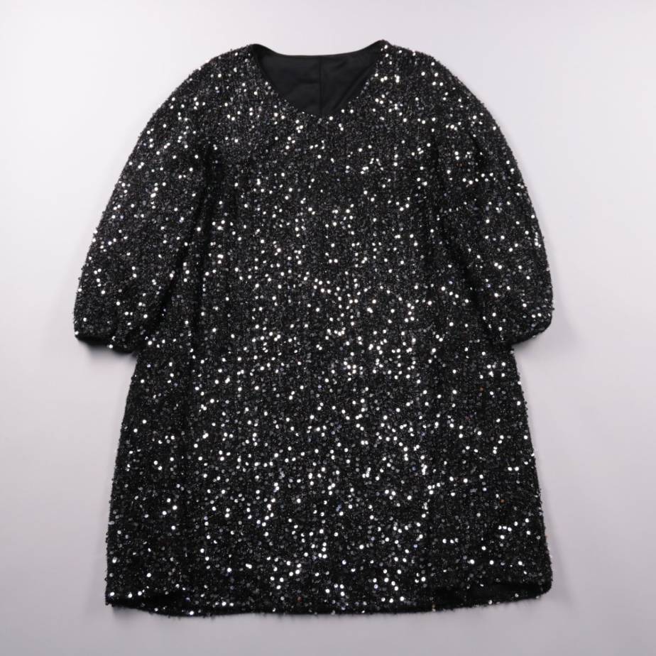 Вечернее платье Shein Curve из чёрной ткани с пайетками, с объёмными рукавами и V-образным вырезом. Подойдёт для вечеринок, новогодних и праздничных выходов, когда нужен акцентный образ. Плотная подкладка делает его комфортнее к телу и помогает держать...