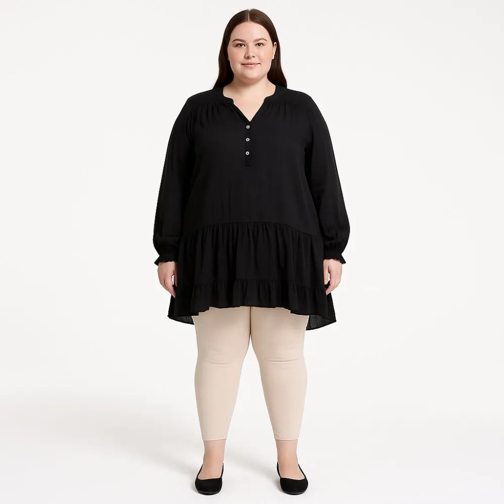 Женская блузка Reserved в чёрном цвете, свободного кроя с длинными рукавами и планкой на пуговицах. Подойдёт для повседневных образов и офиса, хорошо сочетается с брюками и джинсами. Лёгкий материал комфортен в носке и почти не мнётся.