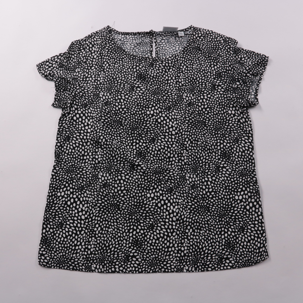 Блузка Vila из вискозы Lenzing™ Ecovero™ с коротким рукавом и контрастным черно-белым принтом. Подойдет для лета и теплого офиса, легко сочетается с джинсами, брюками и юбками. Легкая ткань хорошо дышит и комфортна в течение дня.