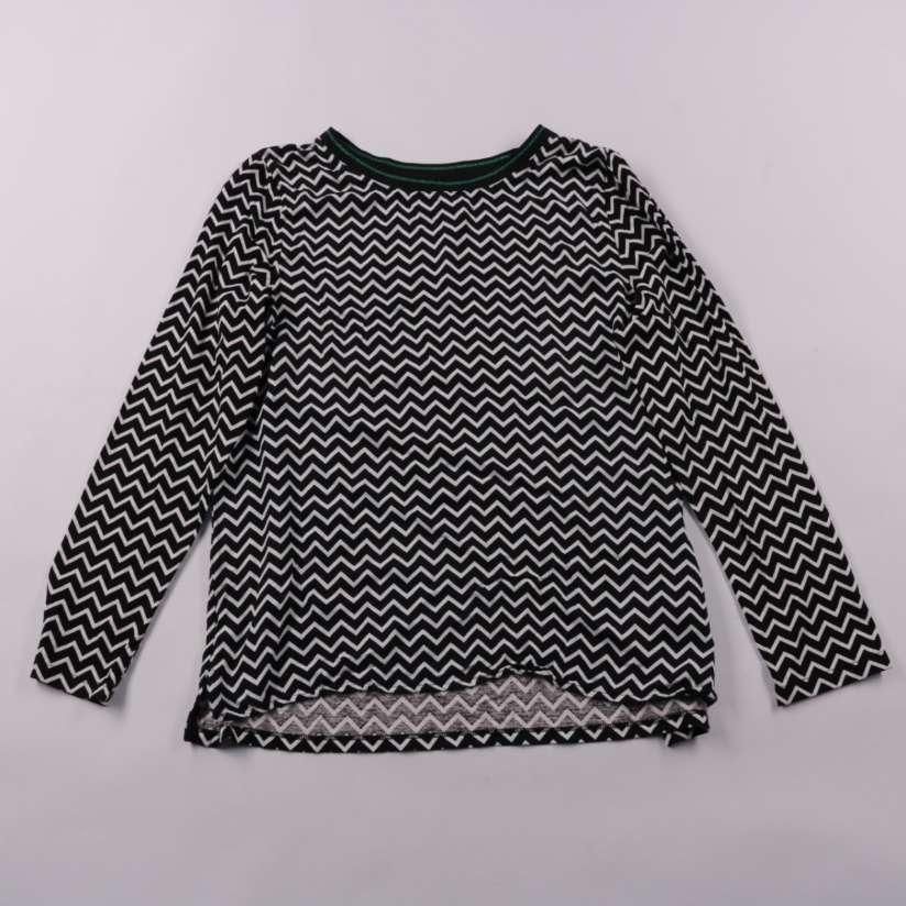 Блузка Street One с длинным рукавом и графичным принтом «зигзаг» в чёрно-белых тонах. Подойдёт для офиса и на каждый день, легко сочетается с джинсами или однотонными брюками. Ткань из вискозы приятно ощущается на коже и хорошо драпируется.