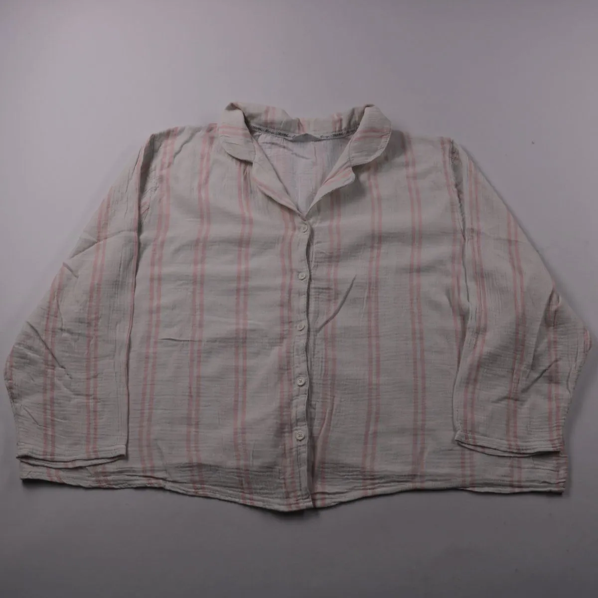Женская хлопковая блузка Tu в светлом оттенке с нежными розовыми полосками и отложным воротником. Подойдёт для дома и спокойных повседневных образов, легко сочетается с джинсами и однотонными брюками. Хлопок хорошо дышит и приятен к телу, что удобно для носки в течение дня.