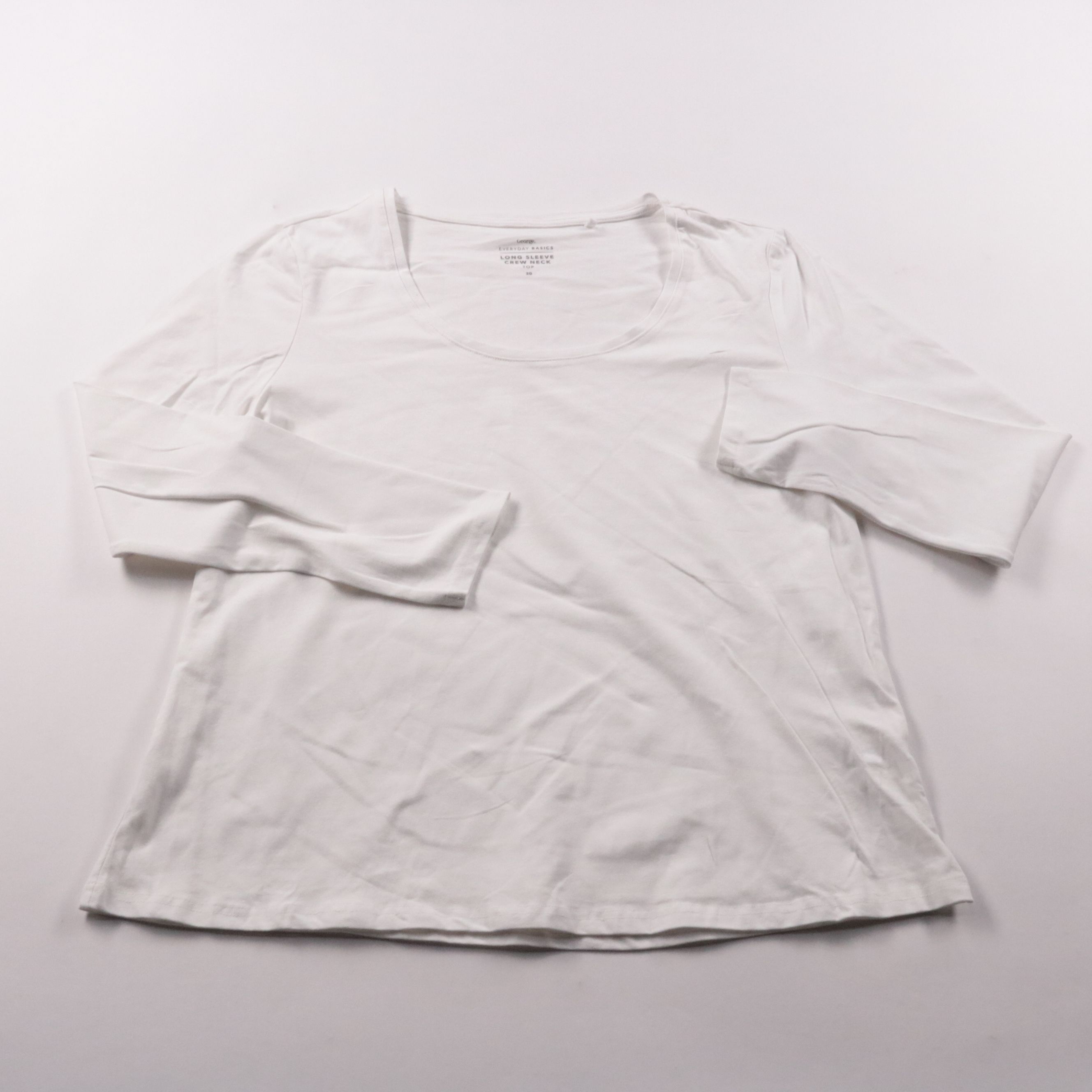 Белый лонгслив George с круглым вырезом и длинным рукавом. Подойдёт для повседневных образов и как базовый слой под жакет или кардиган. Лёгкий материал и универсальный цвет удобно сочетать с любым низом.