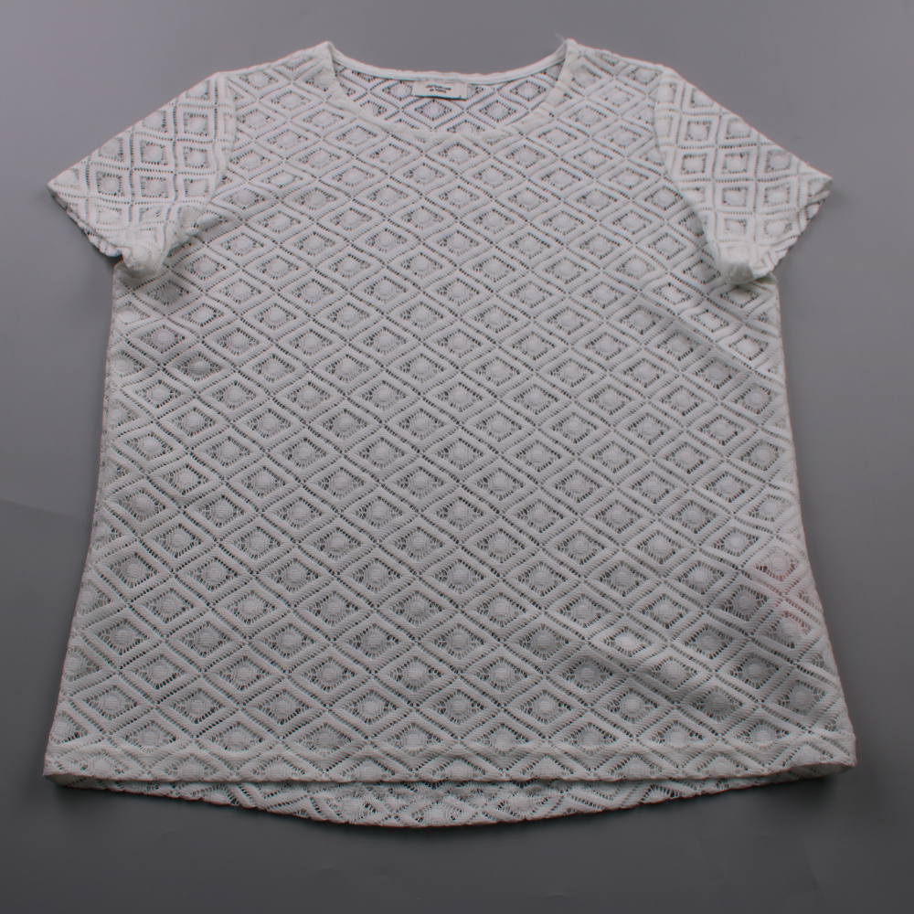 Футболка Jacqueline de Yong из ажурного материала с геометрическим узором и коротким рукавом. Подойдёт для лета и отпускных образов с топом или бра. Лёгкая ткань быстро сохнет и почти не мнётся.