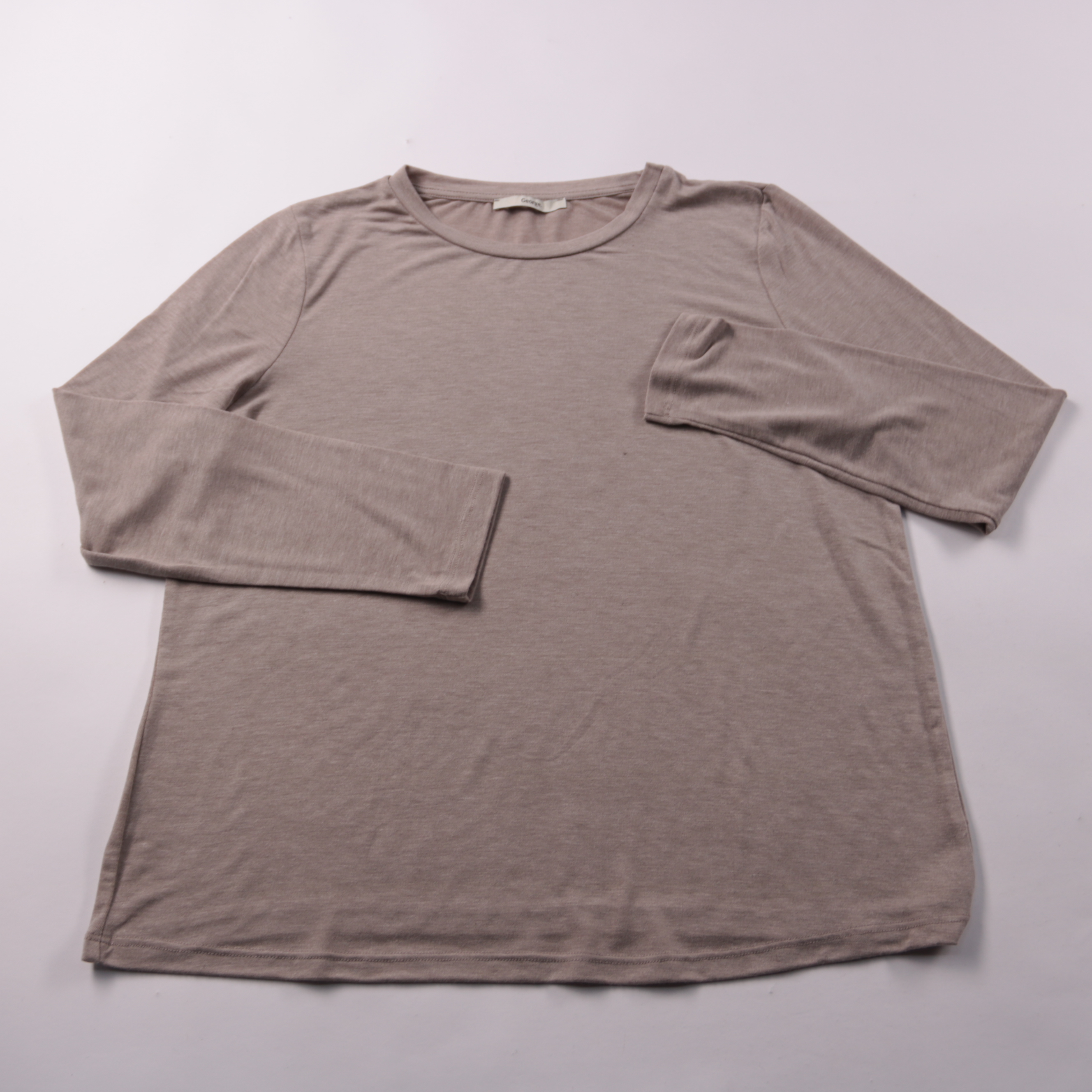 Женский лонгслив George нейтрального бежево-серого оттенка, с круглым вырезом и нагрудным карманом. Подойдёт для повседневных образов и как базовый слой в прохладную погоду. Мягкий трикотаж с эластаном хорошо тянется и комфортно садится по фигуре.