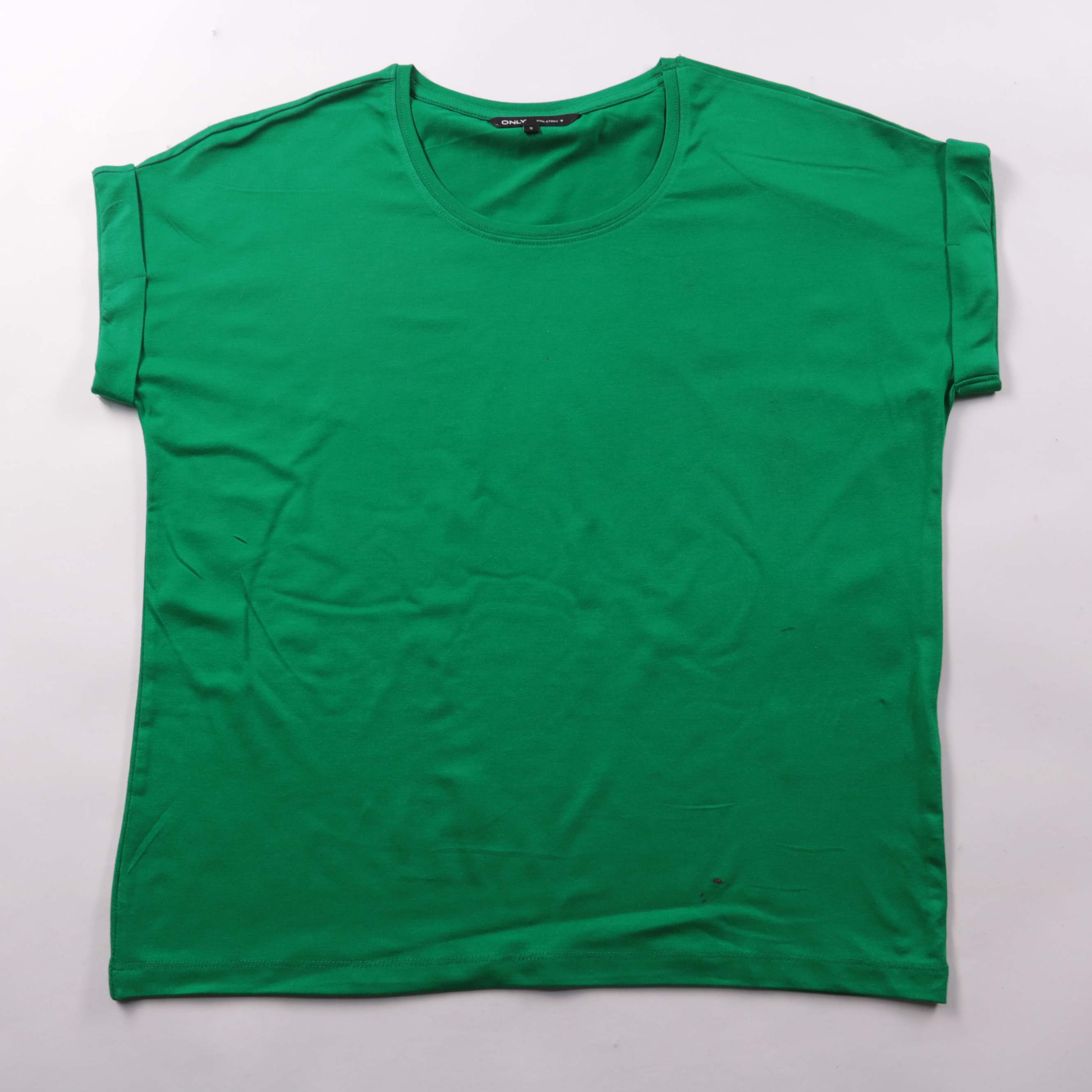 Зелёная футболка Only свободного кроя с круглым вырезом и коротким рукавом. Подойдёт для повседневных образов и в офис с базовыми брюками/джинсами. Ткань с вискозой мягкая и комфортная в носке, почти не мнётся.